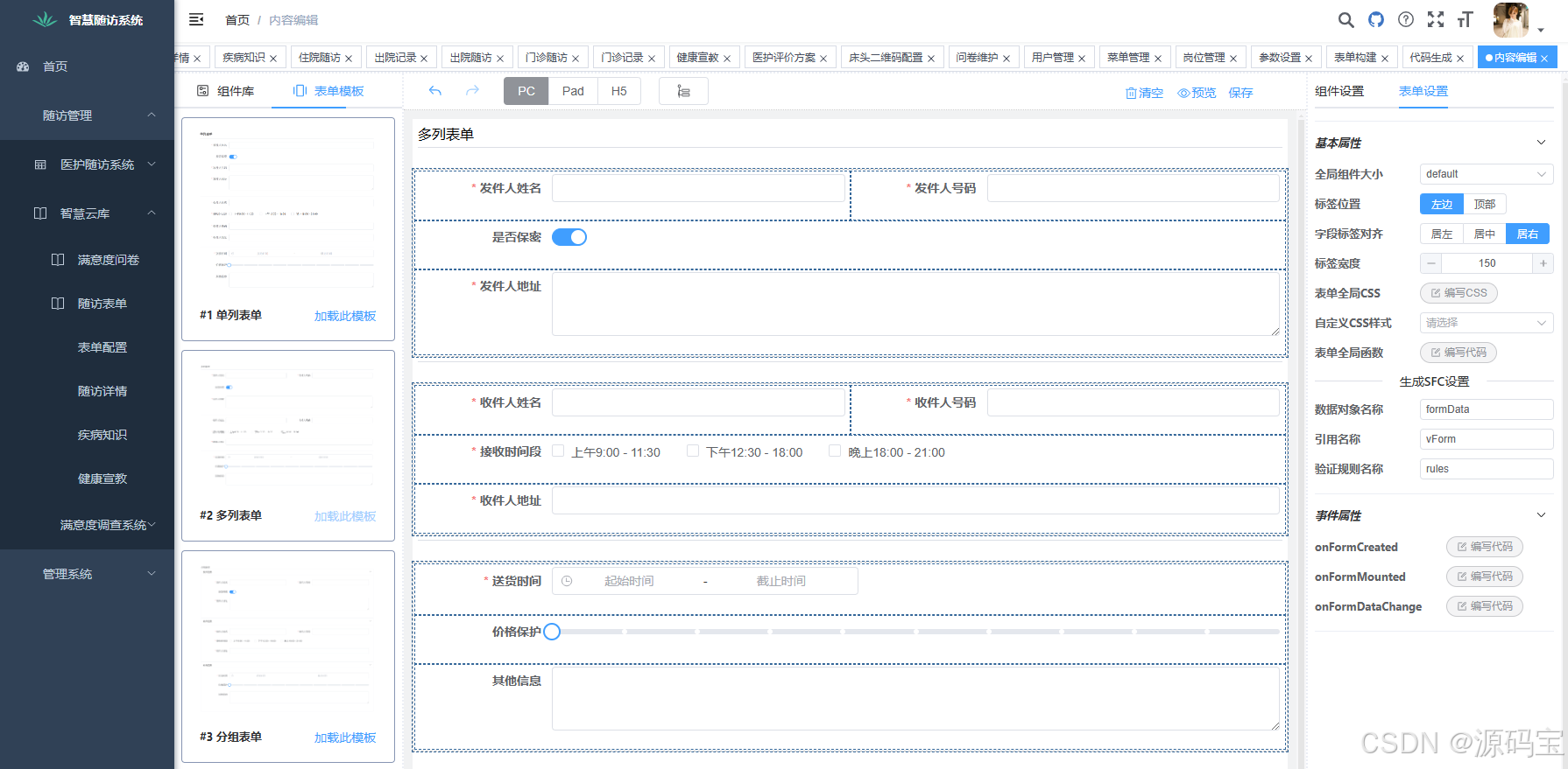 2、智慧云库:针对随访表单库进行管理,支持随访表单新增、编辑和删除,同时支持对表单进行配置。