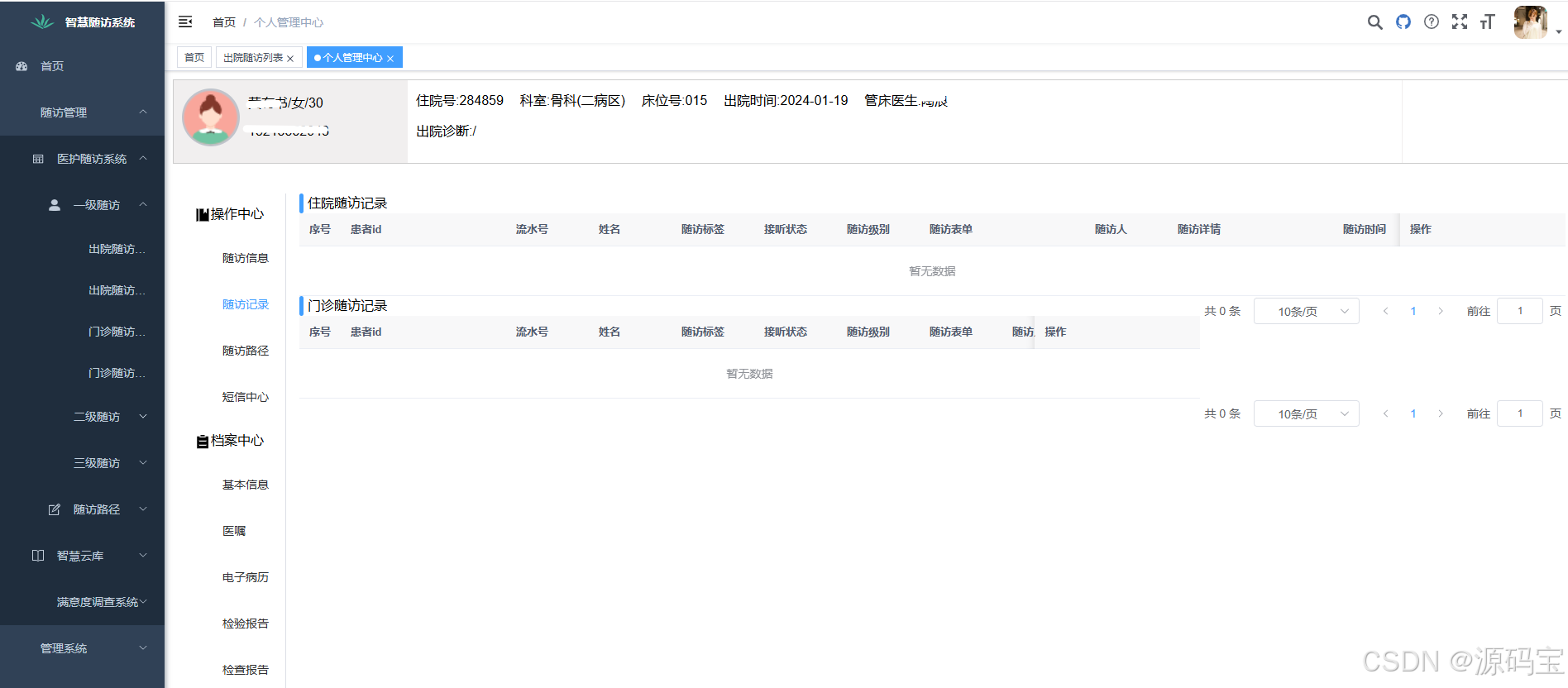 2)二级随访:出院随访列表、出院随访记录、门诊随访列表、门诊随访记录