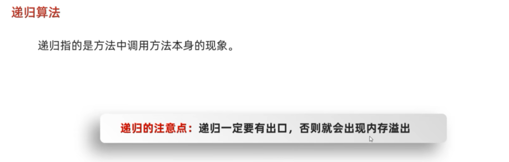 所以使用递归的时候,递归一定要有出口,否者会出现内存溢出。