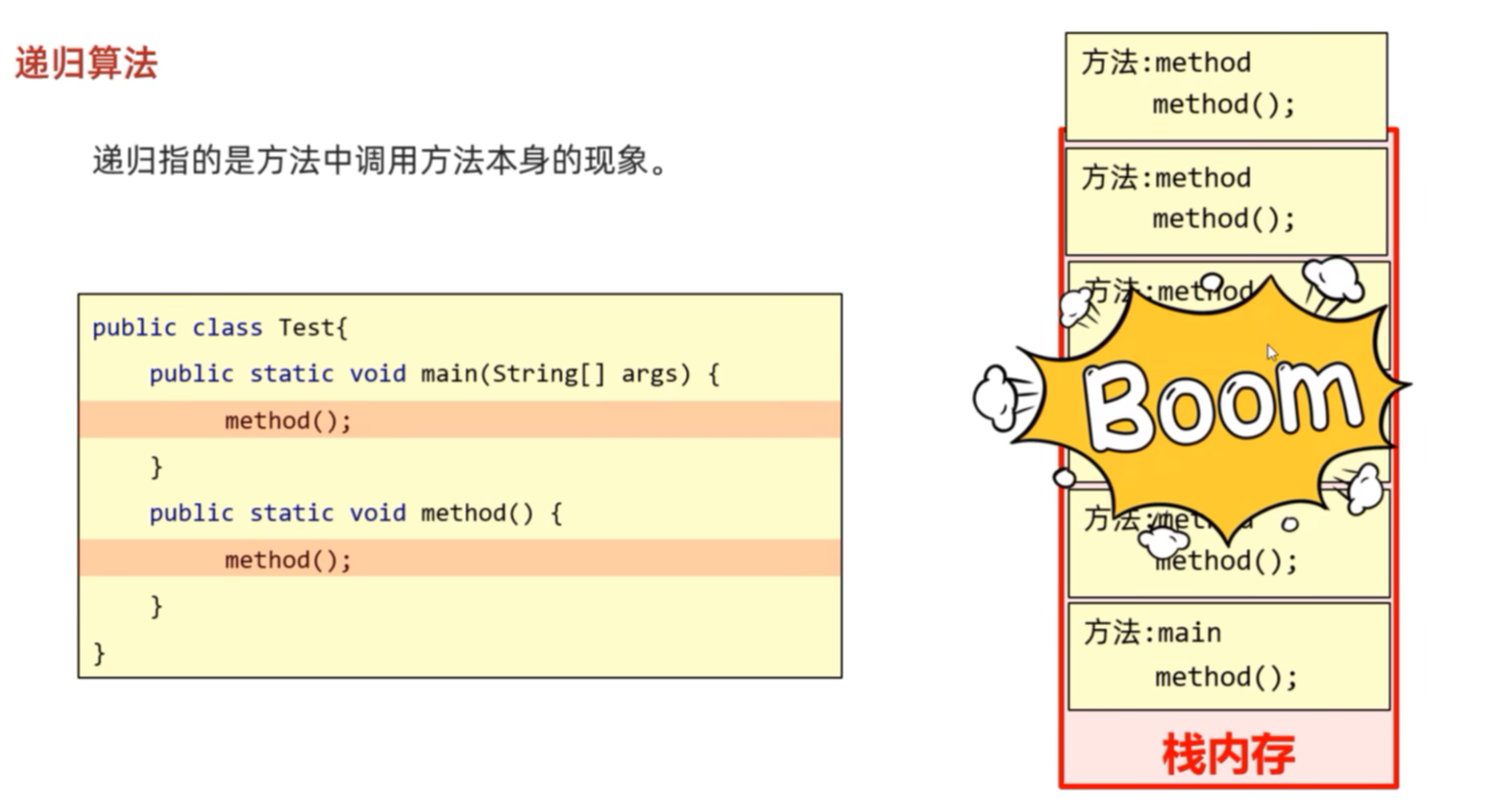 public void endlessRecursion() {endlessRecursion(); // 无限递归,最终StackOverflowError