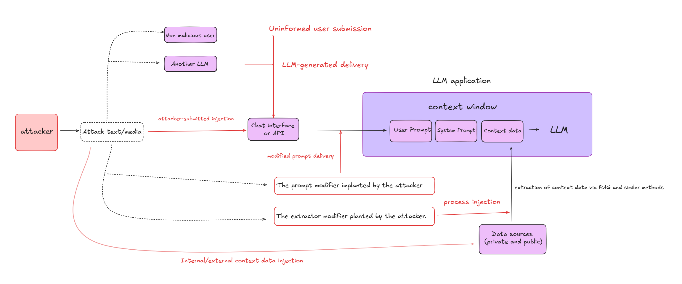 - 当 LLM 通过 RAG 等功能从数据源提取信息时,恶意数据会被加载到上下文窗口,进而篡改模型行为。