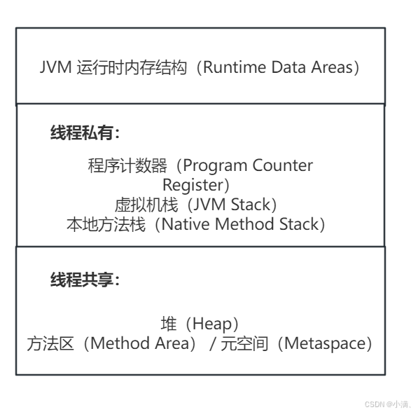JVM 内存结构”常被用于泛指这部分区域,但从规范角度讲,它是 JVM 的 运行时数据区(Runtime Data Areas)。