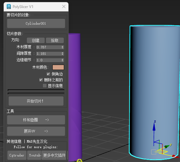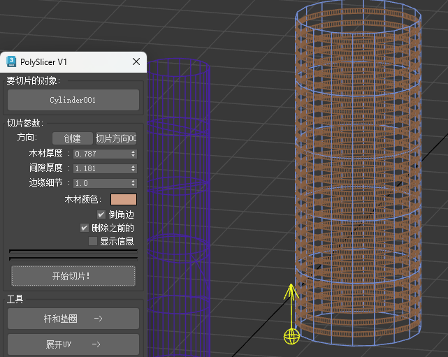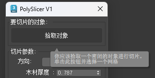 ②点击polyslicer,打开后点击拾取对象,选取需要被切片的目标