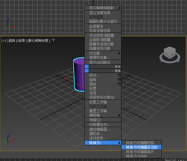 选中圆柱 → 右键 → 转换 → 转换为可编辑图形(只有变成 Poly 才能用分段/切片工具)