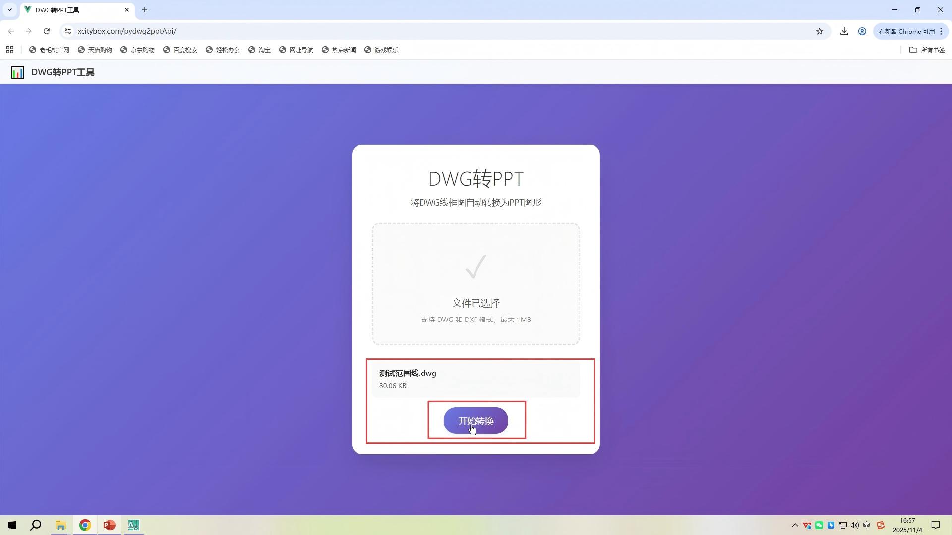 操作简单:拖拽上传,点击转换,三秒内输出PPT