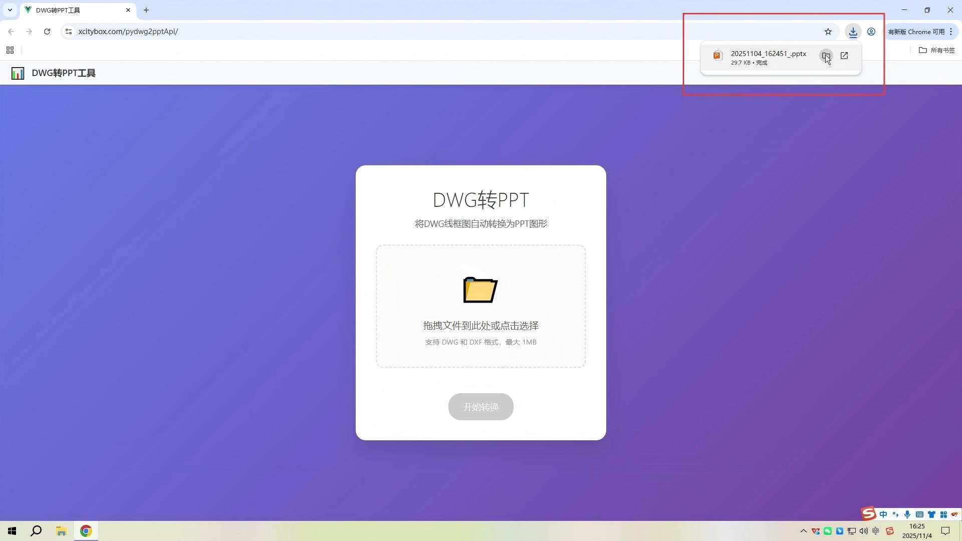等一等转换完成,在浏览器自定的下载位置可以看到输出的PPT文件!