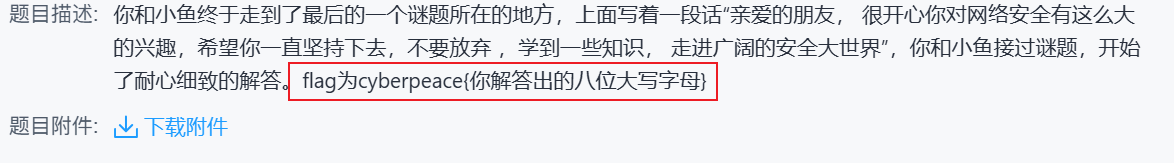 因为提示是八位大写字母,又发现有7个0,所以我们可以猜想分成8段 然后用python脚本来实现