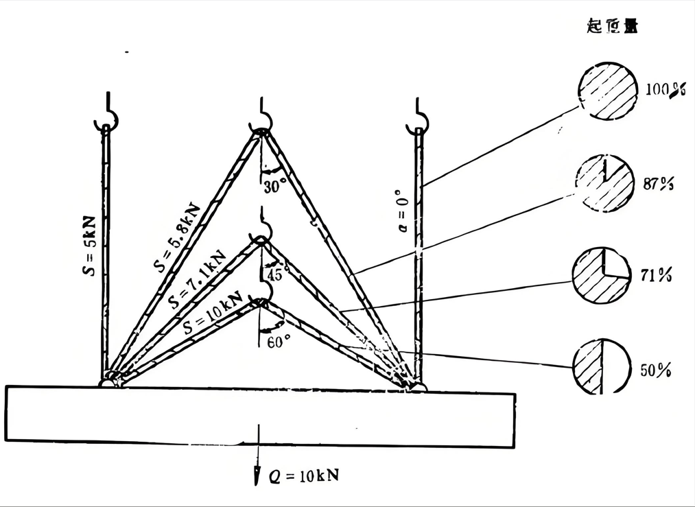 图1:钢丝绳夹角受力图示