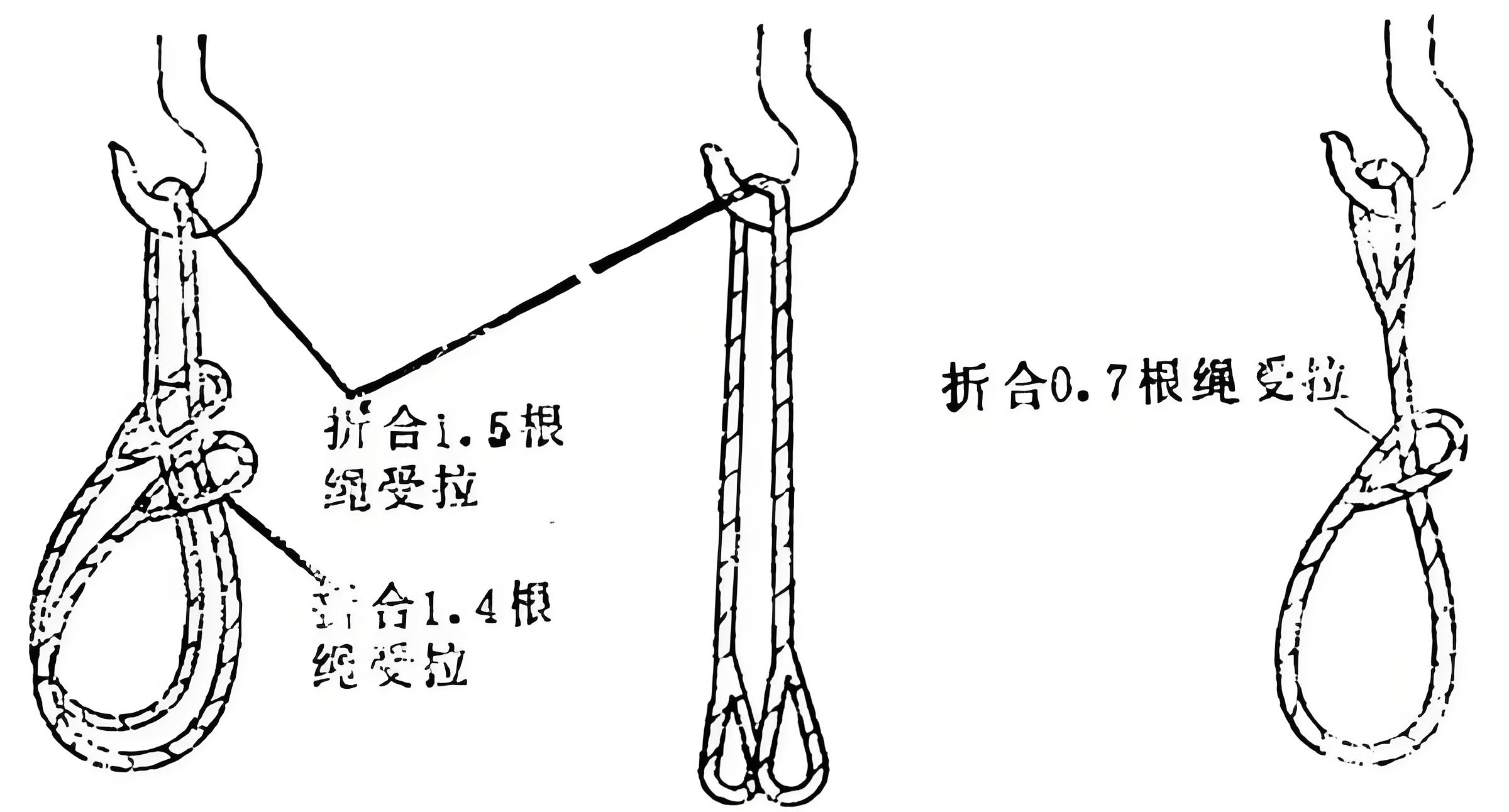 弯曲应力与效率系数被忽视:钢丝绳对折使用时,在弯曲处产生附加弯曲应力,且各股受力不均。其有效破断拉力 ≠ 单股破断拉力 × 2,而应乘以一个小于 1 的效率系数(通常为 0.75-0.9)。