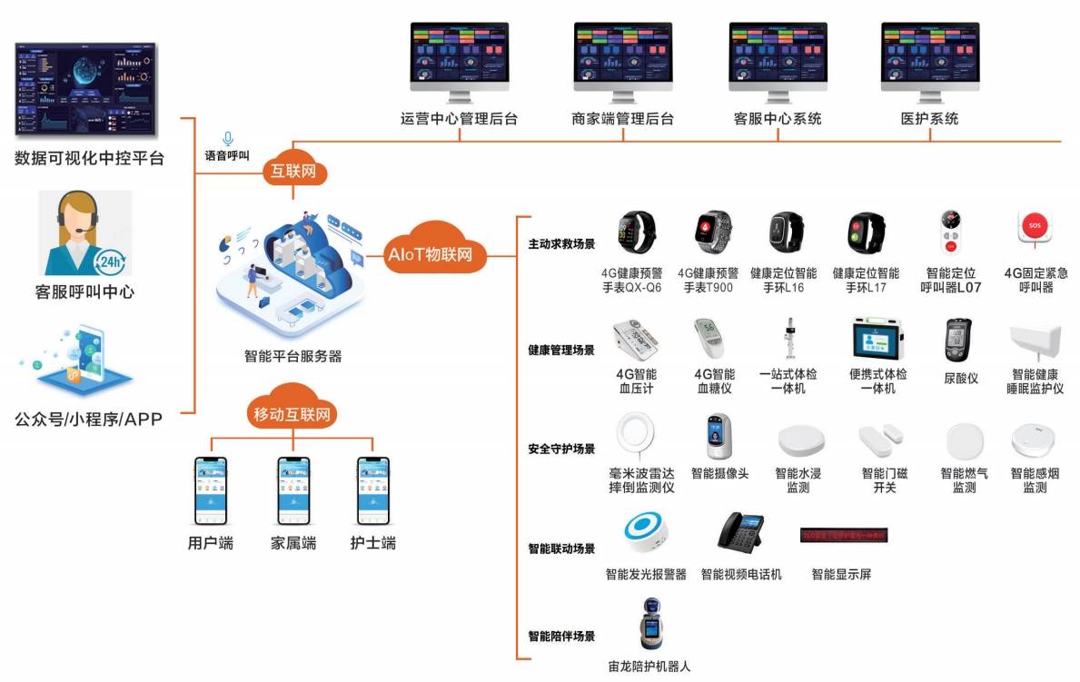 七彩喜的智慧康养整体解决方案,并非单一产品的堆砌,而是一套覆盖"居家-社区-机构"全场景、贯穿"监测-干预-照护"全流程的系统工程。