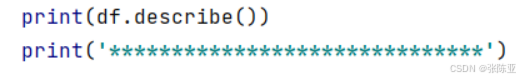 通过Pandas工具的describe()方法来查看数据的平均值、标准差、最小值、分位数、最大值。