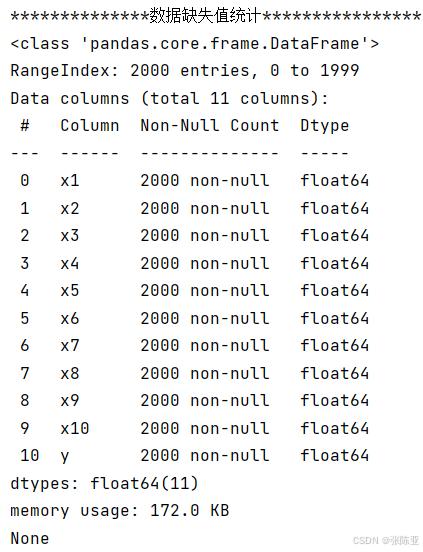 从上图可以看到,总共有11个变量,数据中无缺失值,共2000条数据。