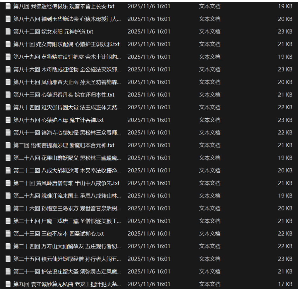 import jsonasync def getcontent(book_id,cid,title):data = {"book_id":book_id,"cid":f"{book_id}|{cid}","need_bookinfo":1}data=json.dumps(data)url=f"https://dushu.baidu.com/api/pc/getChapterContent?data={data}"async with aiohttp.ClientSession() as session: #创建异步HTTP客户端会话async with session.get(url,data=data) as resp:dic=await resp.json()# 异步解析响应内容为JSON格式的字典content=dic["data"]["novel"]["content"] #从响应数据中提取小说章节内容async with aiofiles.open(f"novels/{title}",mode='w',encoding="utf-8") as f: # 使用异步文件操作库aiofiles,以写入模式打开文件await f.write(content)async def getbook_id(url):resp=requests.get(url)dic=resp.json()tasks=[]for a in dic["data"]["novel"]["items"]:title=a["title"]+".txt"cid=a["cid"]#准备异步任务tasks.append(asyncio.create_task(getcontent(book_id,cid,title))) #将每个章节的爬取任务添加到任务列表中await asyncio.gather(*tasks)if __name__=="__main__":book_id="4306063500"url='https://dushu.baidu.com/api/pc/getCatalog?data={%22book_id%22:%22'+book_id+'%22}'await getbook_id(url)
