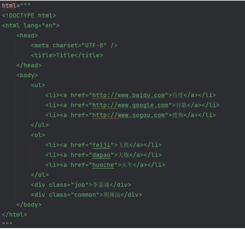 with open(...) as f:以 写入模式(mode='w') 打开文件baidu.html,并指定编码为utf-8(确保中文等字符正常保存)。with语句会自动管理文件的打开 / 关闭,避免资源泄漏。 -