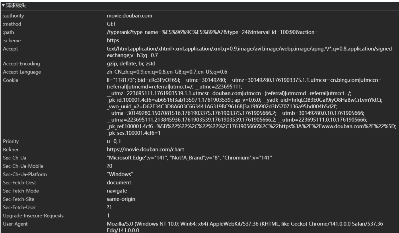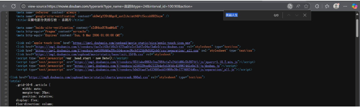 就比如豆瓣这个网站,直接在页面源代码中查找是查找不到数据的,只有一个html的框架。