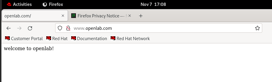 [root@localhost ~]# echo "welcome to openlab!" > /www/openlab/index.html