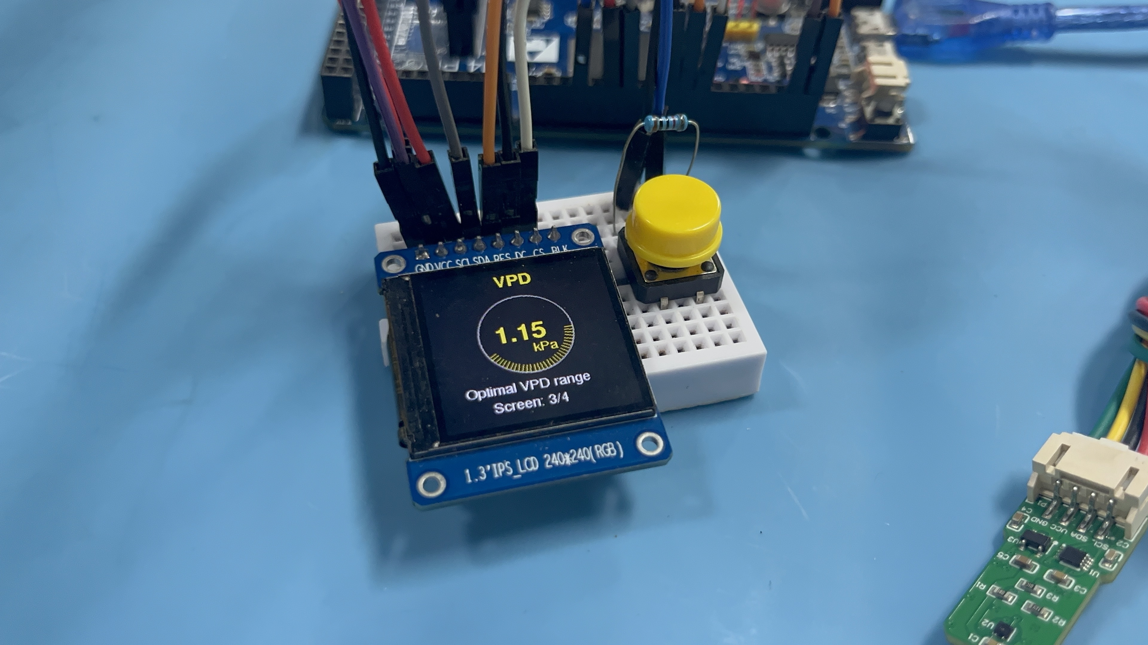系统在实际环境中的温度变化时的实时响应、不同湿度条件下的显示效果,以及VPD异常状态下的警告提示