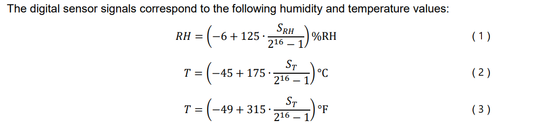 16位温度和湿度原始值,通过公式转换为实际温湿度值
