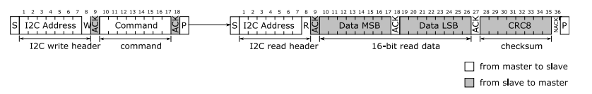 SHT4X使用标准的I2C通信协议,设备地址为0x44(7位地址)