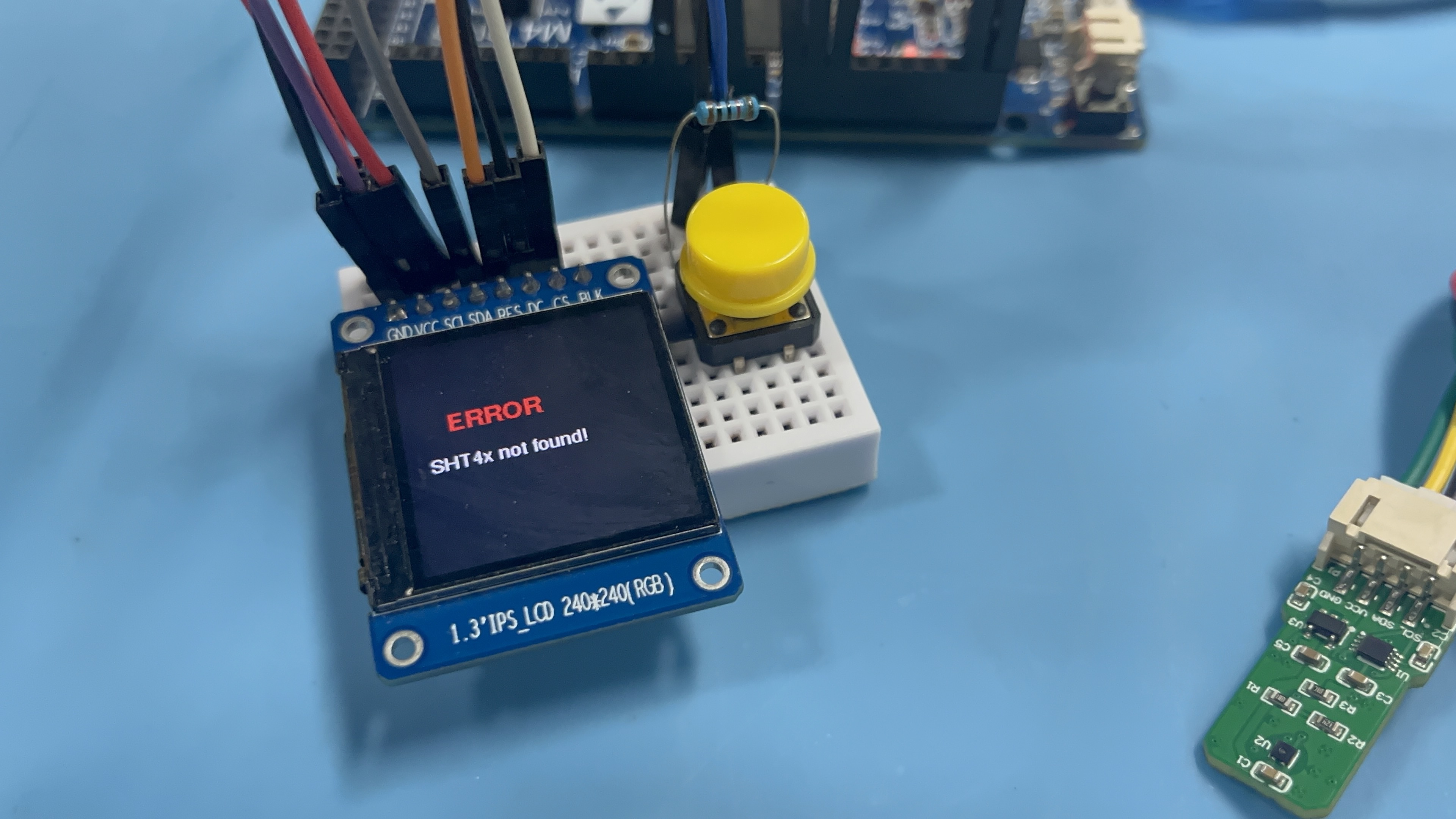 3)测试异常状态提示功能:错误界面展示"SHT40通信失败"