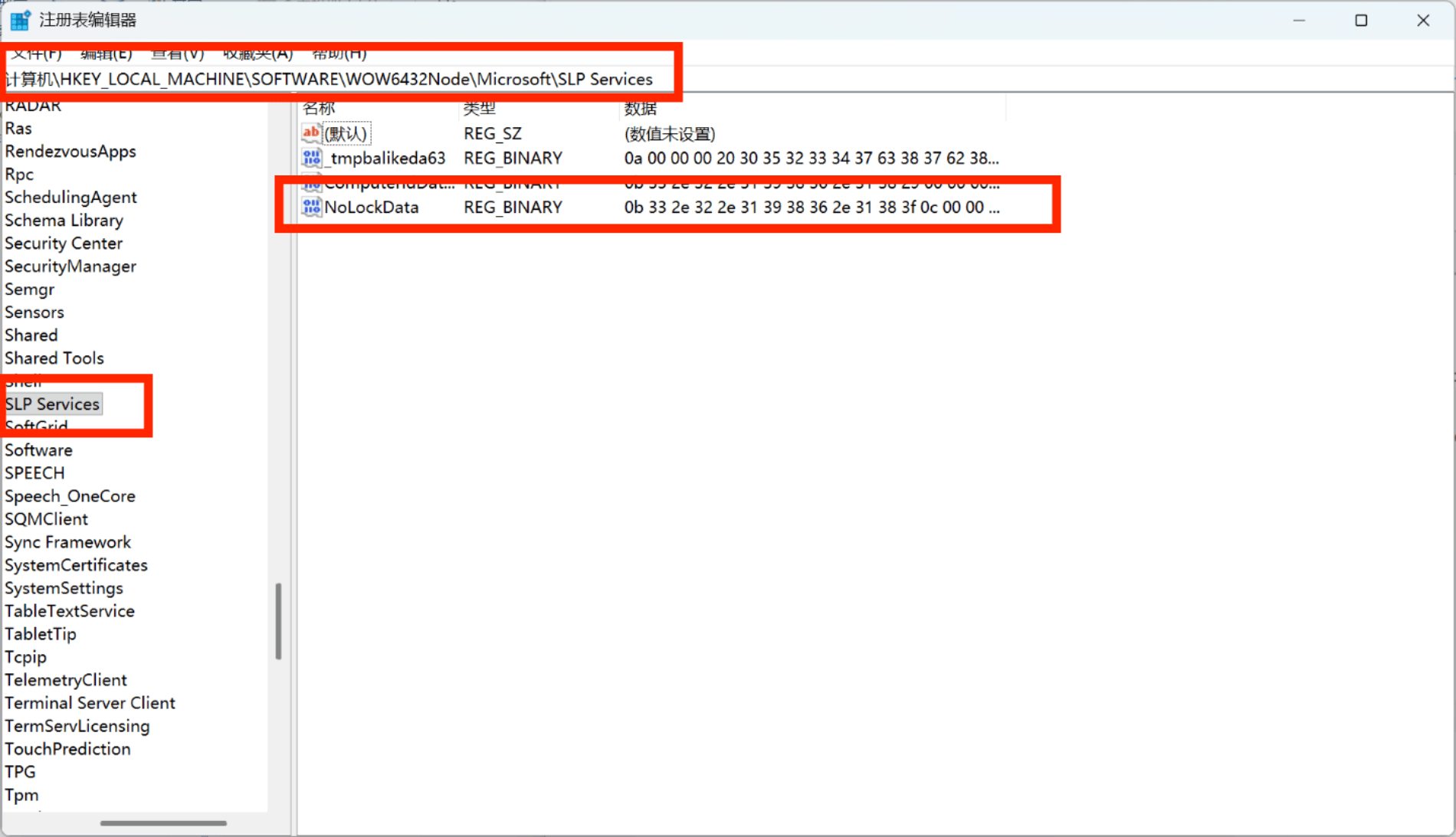 Window 64位电脑:HKEY_LOCAL_MACHINE\SOFTWARE\WOW6432Node\Microsoft\SLP Services