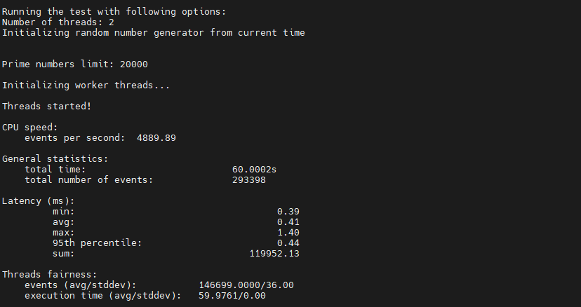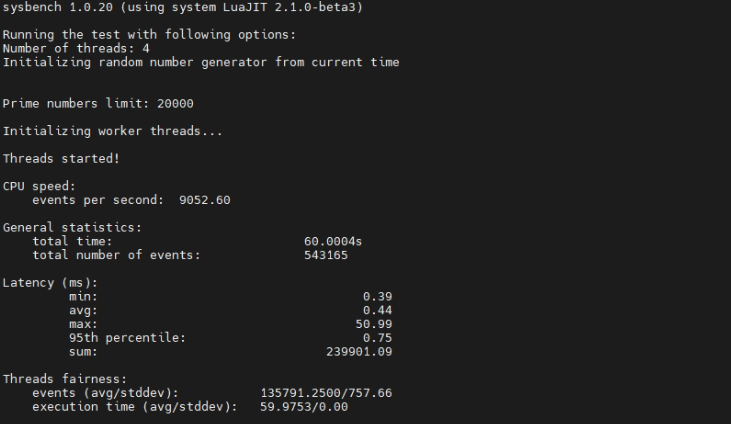 CPU测试覆盖单线程、多线程、压力和浮点运算等多种场景。单线程每秒事件数达2512.92,平均延迟0.40ms,显示出高效的单核计算能力;多线程扩展优秀,双线程和四线程分别提升1.95倍和3.60倍,四线程每秒事件数9052.60,证明了openEuler对并行处理的优化。压力测试下,4核心满载120秒无异常,sar监控确认系统稳定;浮点运算1亿次仅耗0.89秒,每秒111.84 M ops/sec,突显其在科学计算领域的潜力。总体上,openEuler 22.03 LTS的CPU性能在虚拟机配置中高效可靠,内核增强确保了高负载下的响应性和耐久性。