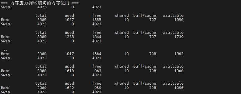 echo "开始时间: $(date '+%H:%M:%S')"# 运行内存压力测试