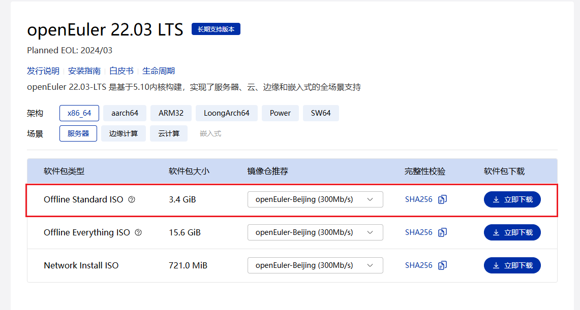 # 官方下载页面 https://www.openEuler.org/zh/download/archive/detail/?version=openEuler%2022.03%20LTS