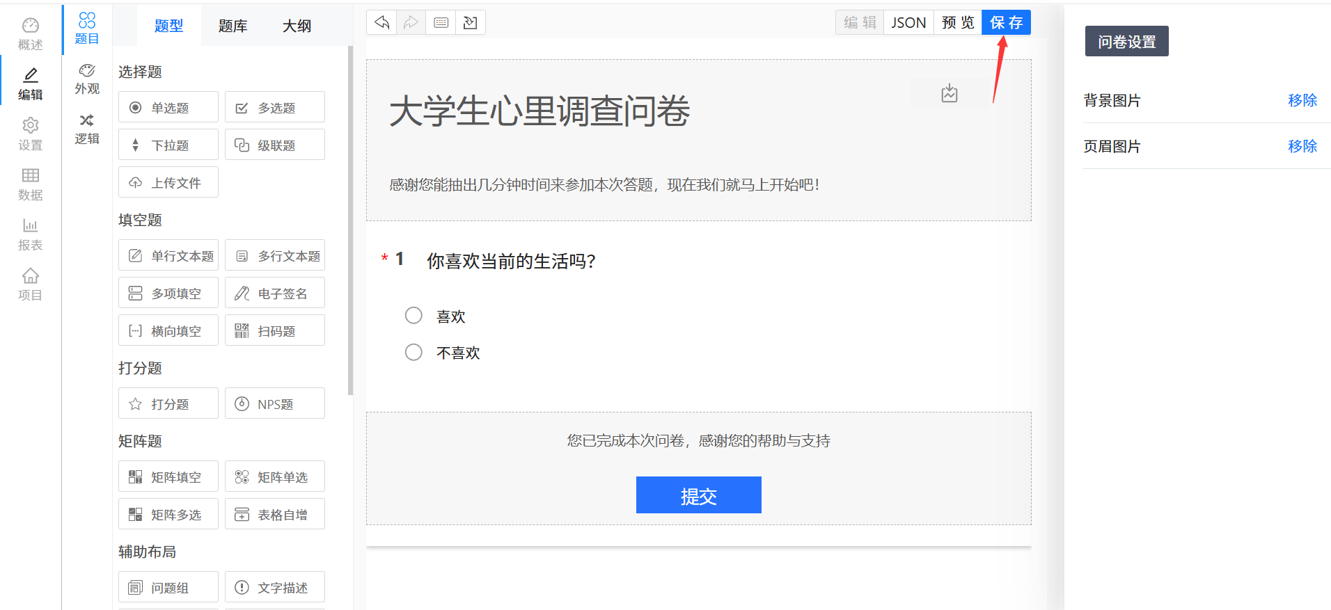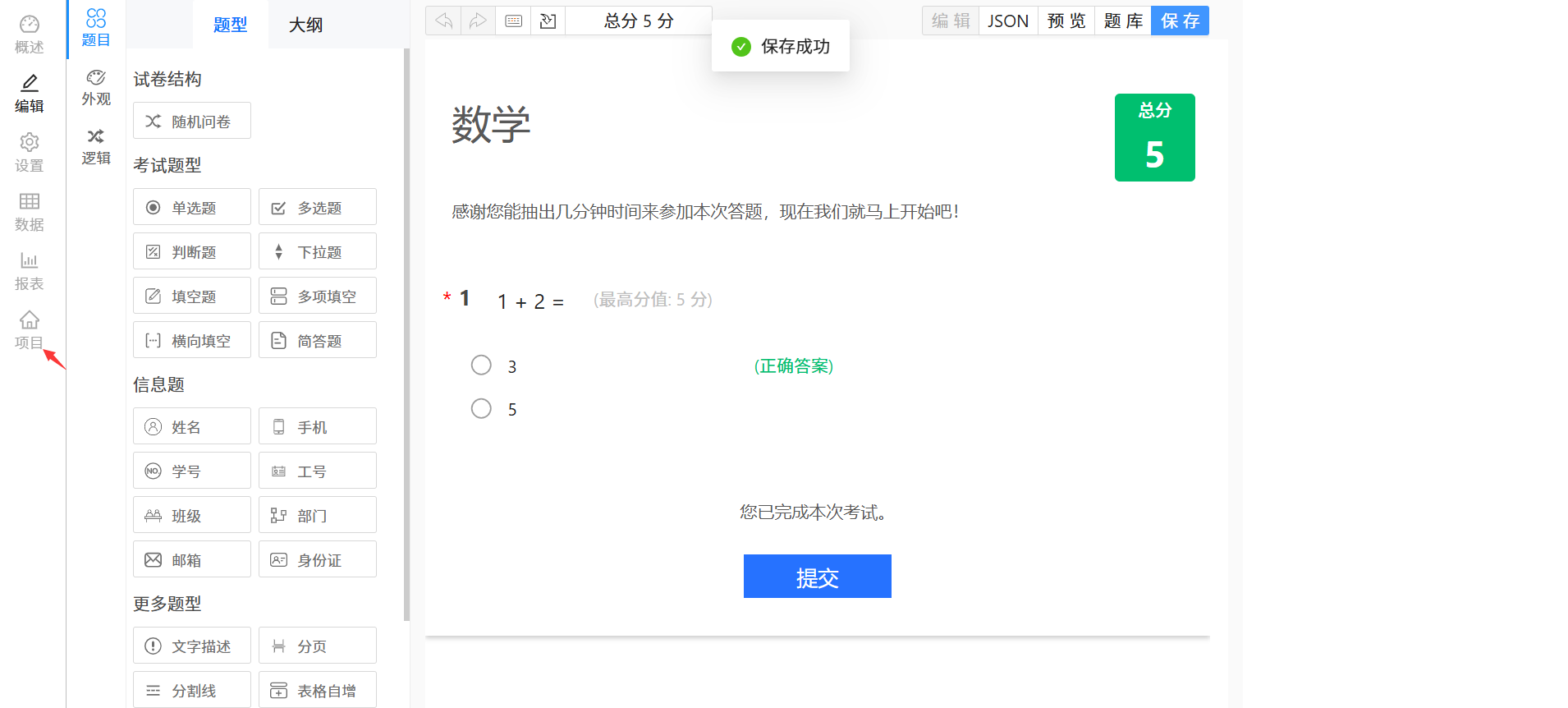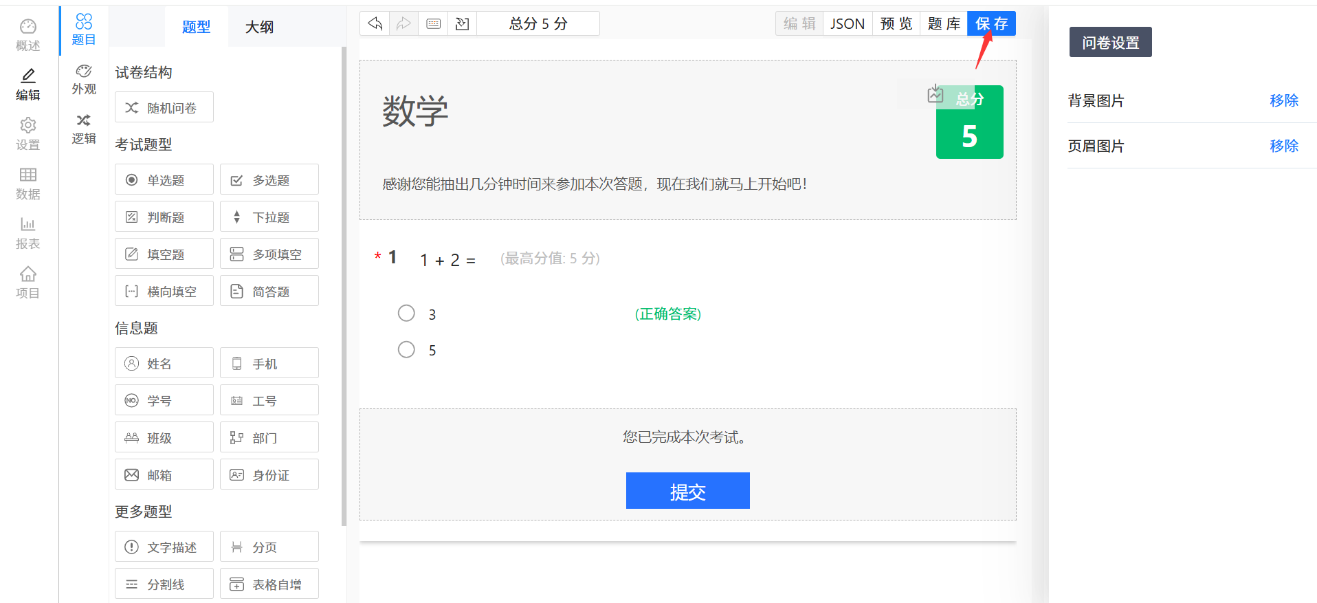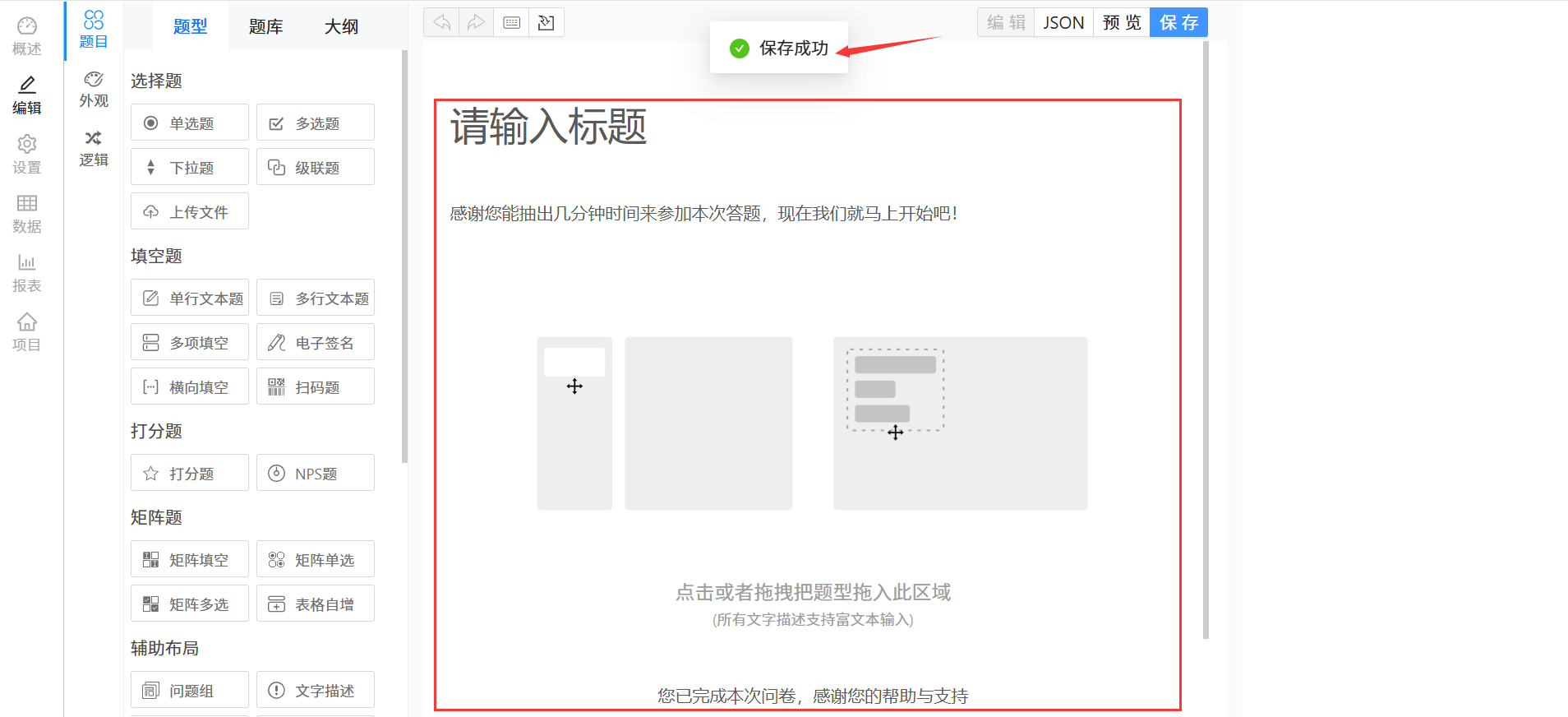 创建问卷/考试异常:没进行编辑,点击“保存”,显示保存成功