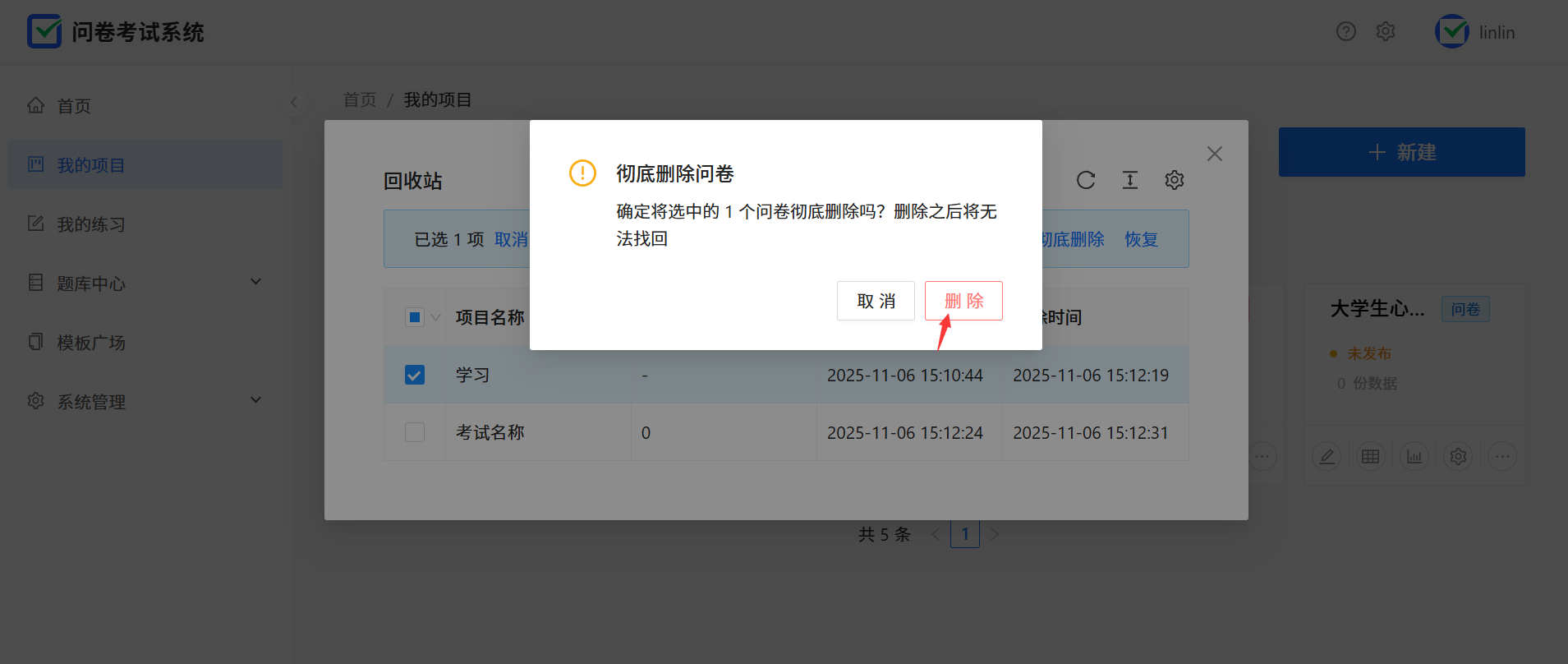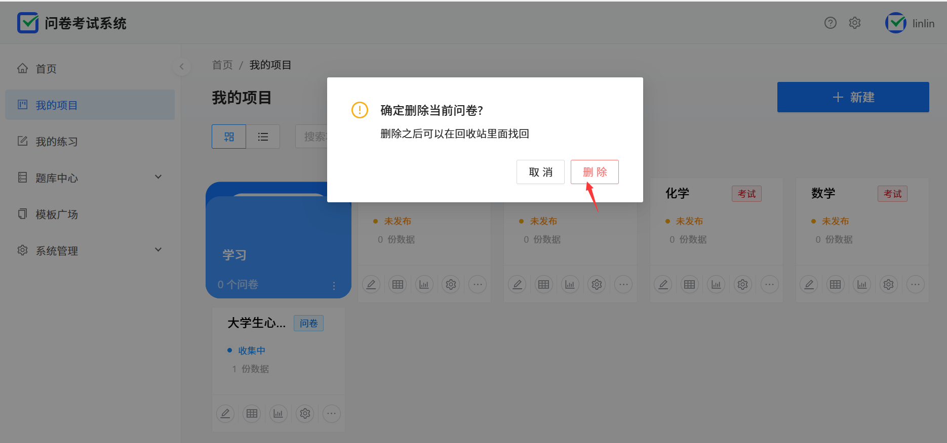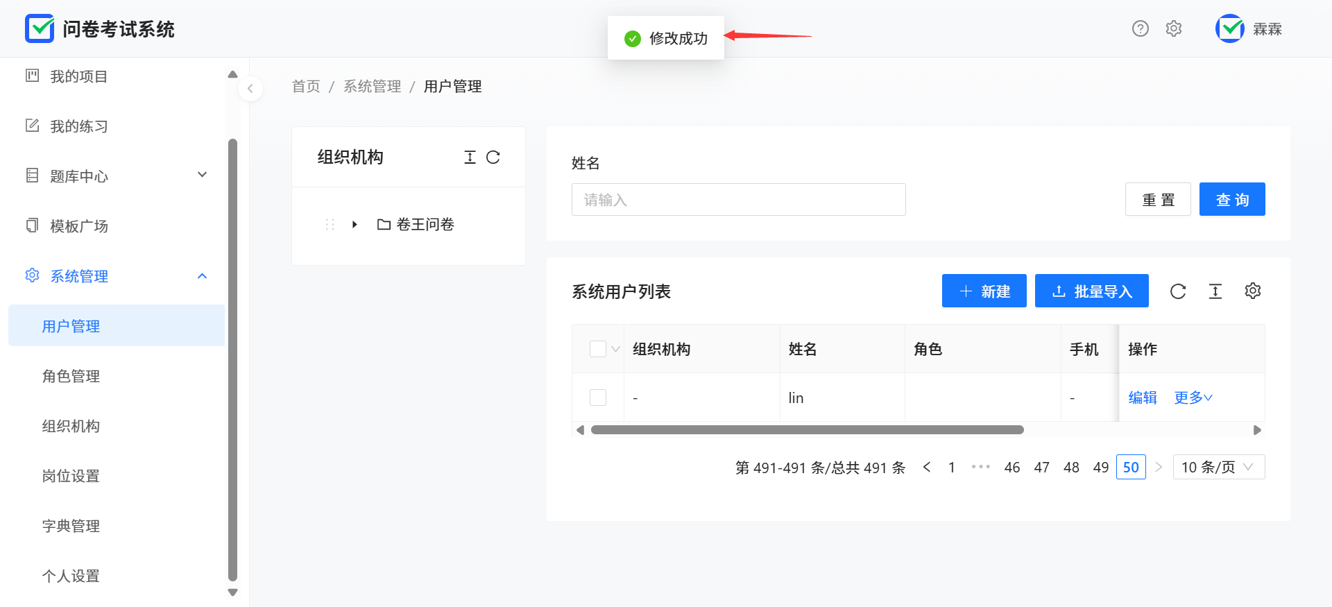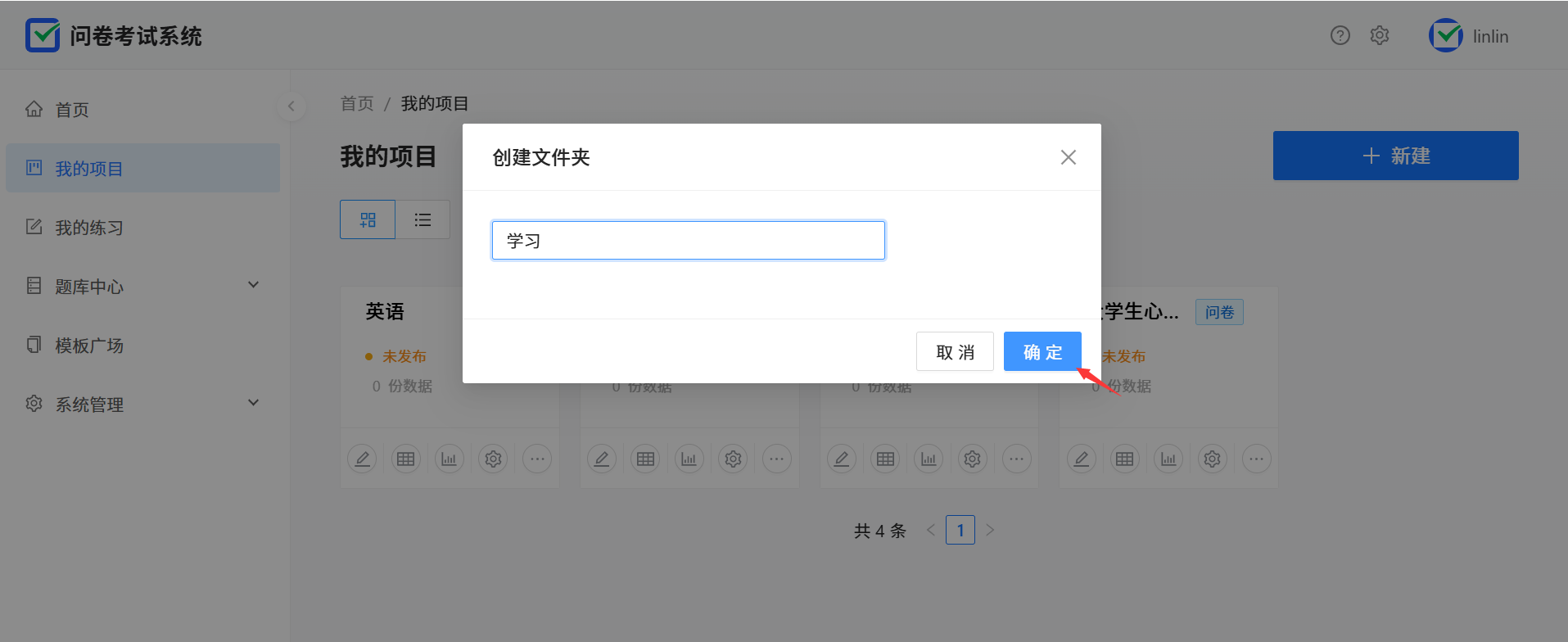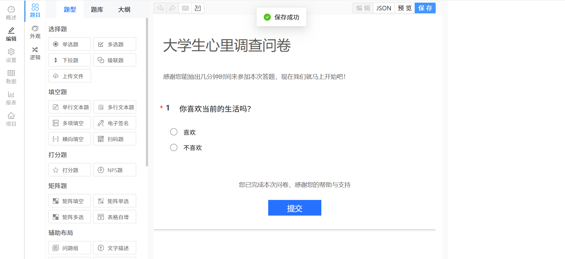 创建问卷/考试异常:没进行编辑,点击“保存”,显示保存成功