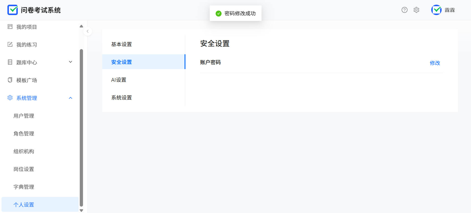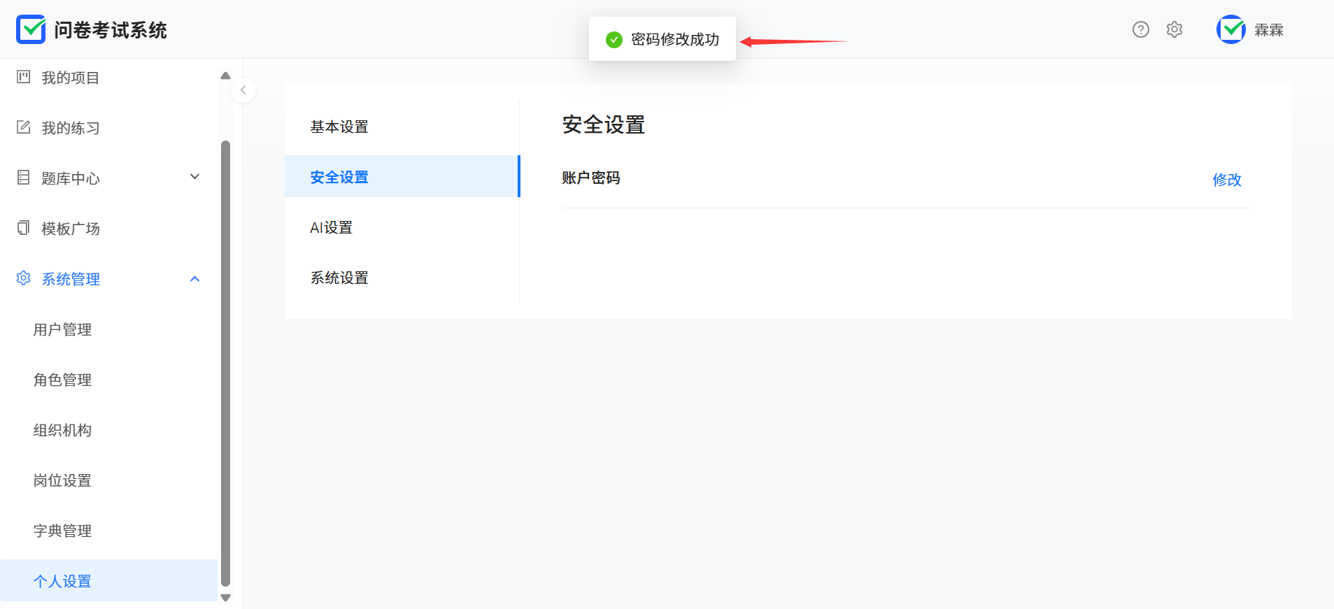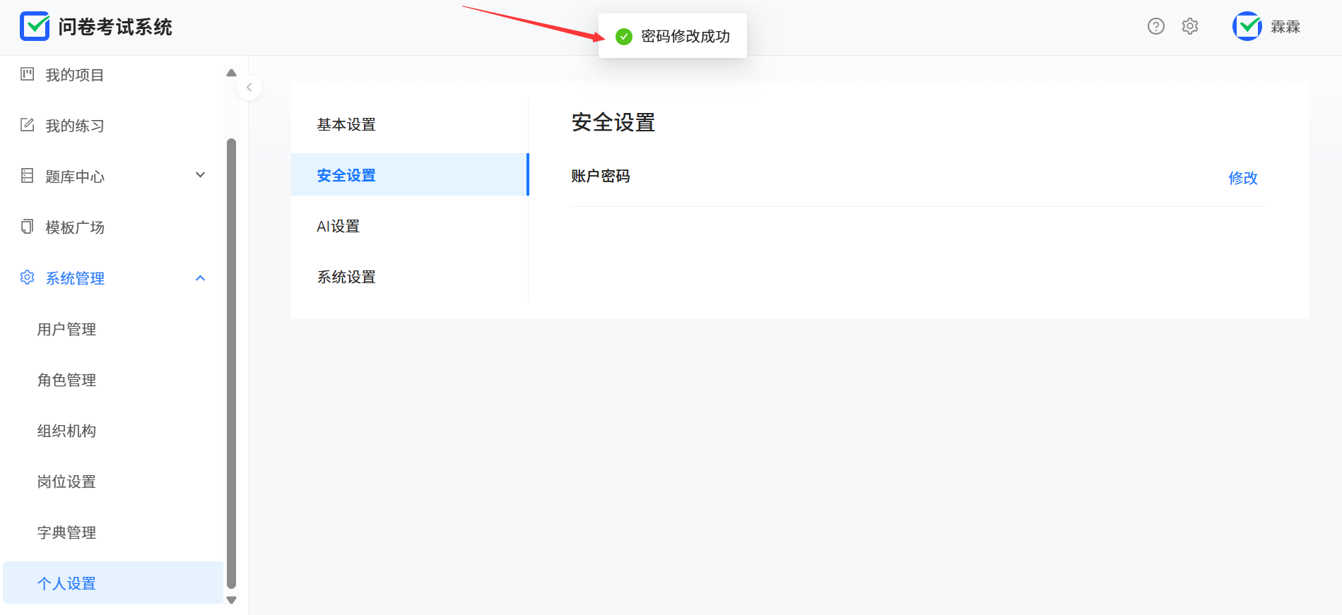 重置密码异常:输入原来的密码,点击“修改”按钮,显示修改成功