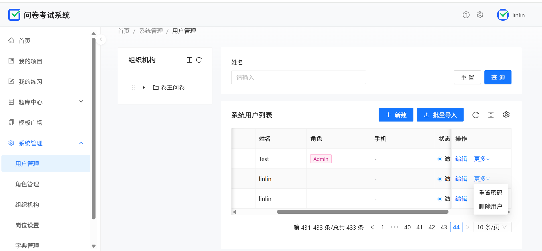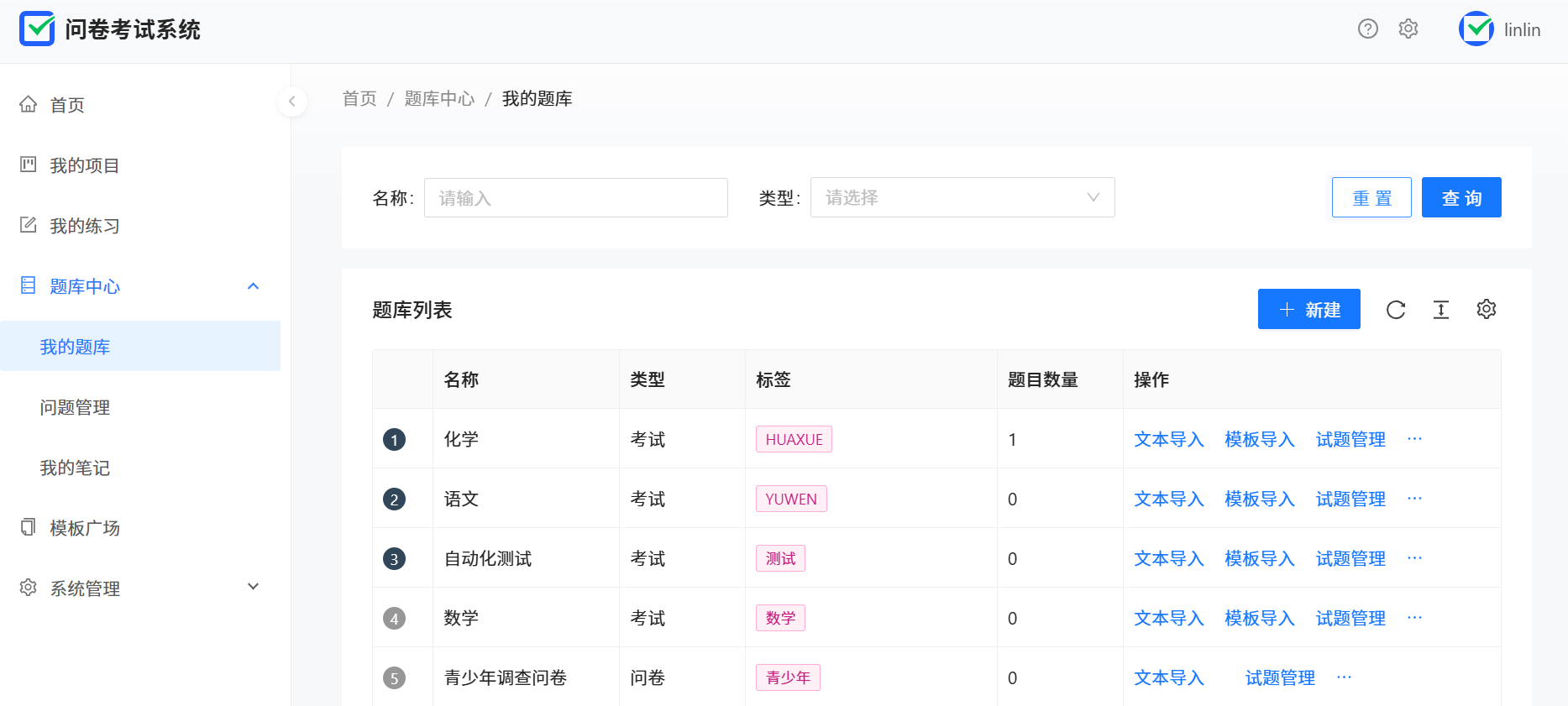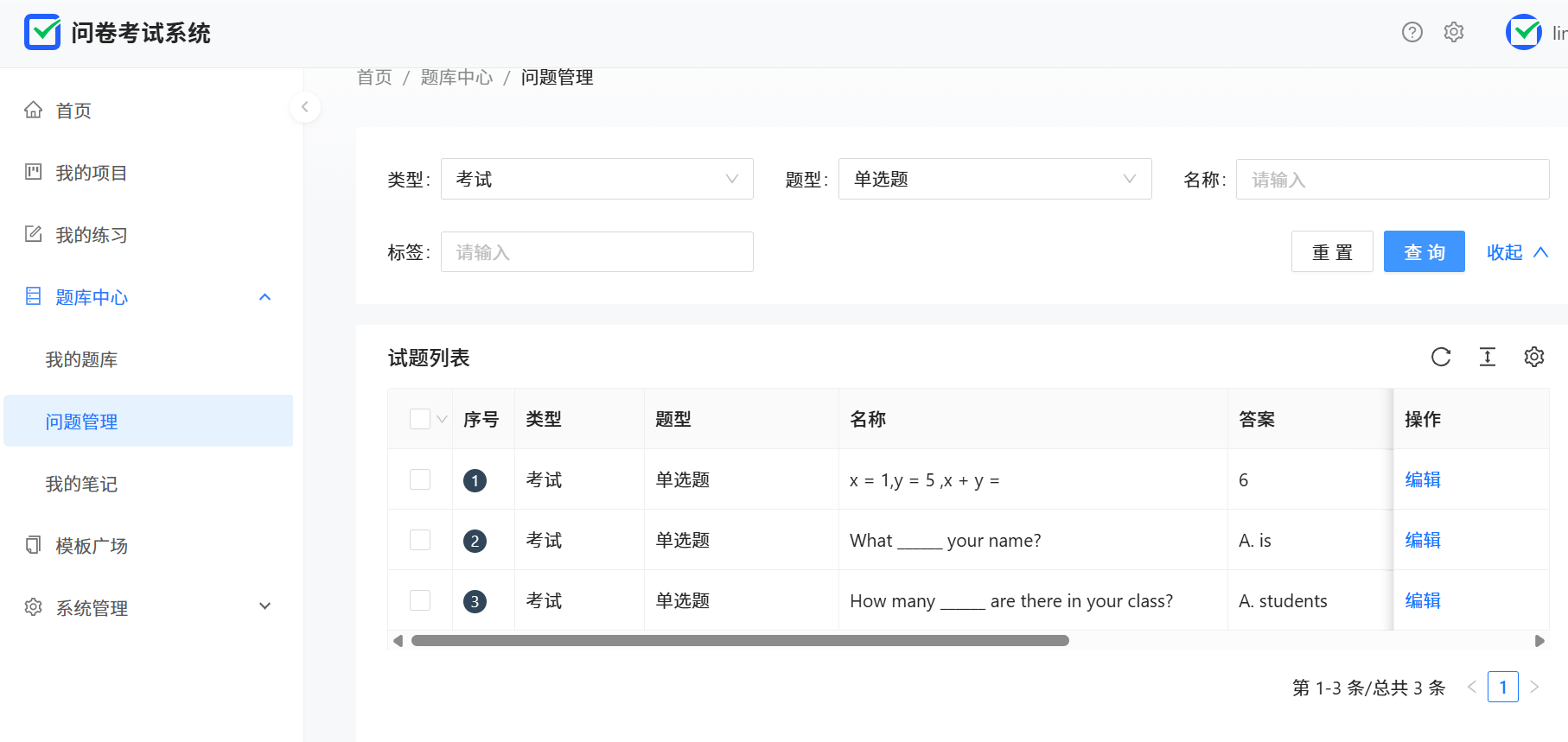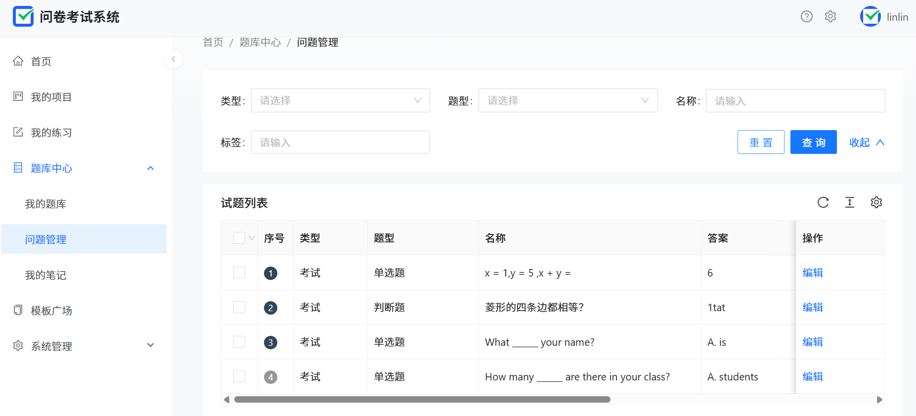 问卷考试系统是基于Web开发的在线平台,便于用户创建管理各种问卷和考试,同时还对数据进行收集与分析,帮助用户快速掌握有效的信息。而且也对题库、模板以及系统进行管理