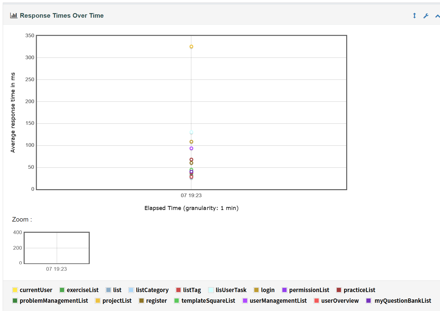 Response Times Over Time,用于实时展示接口响应时间随测试时间的变化趋势。