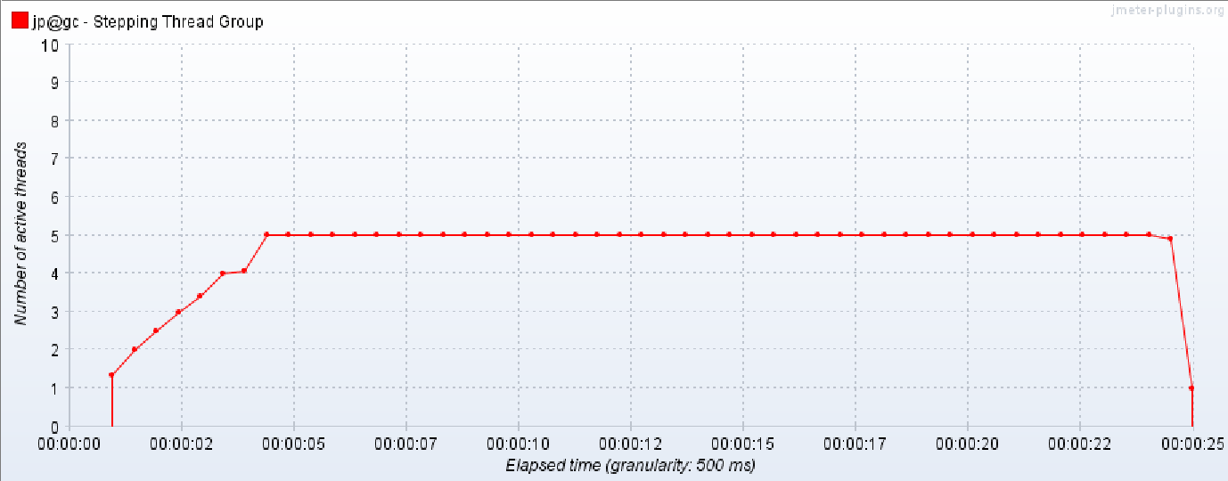 Active Threads Over Time,用于实时展示测试过程中活跃线程数(并发用户数)随时间的变化趋势。
