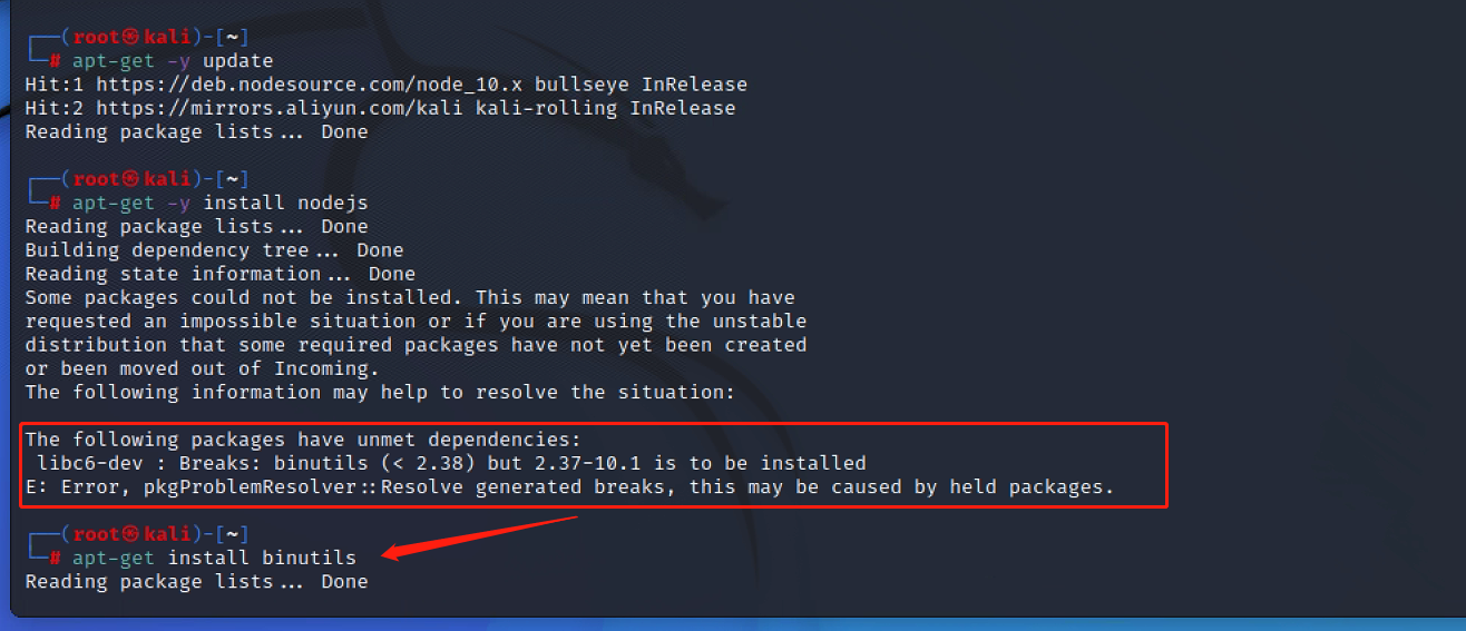 apt-get install binutils最后