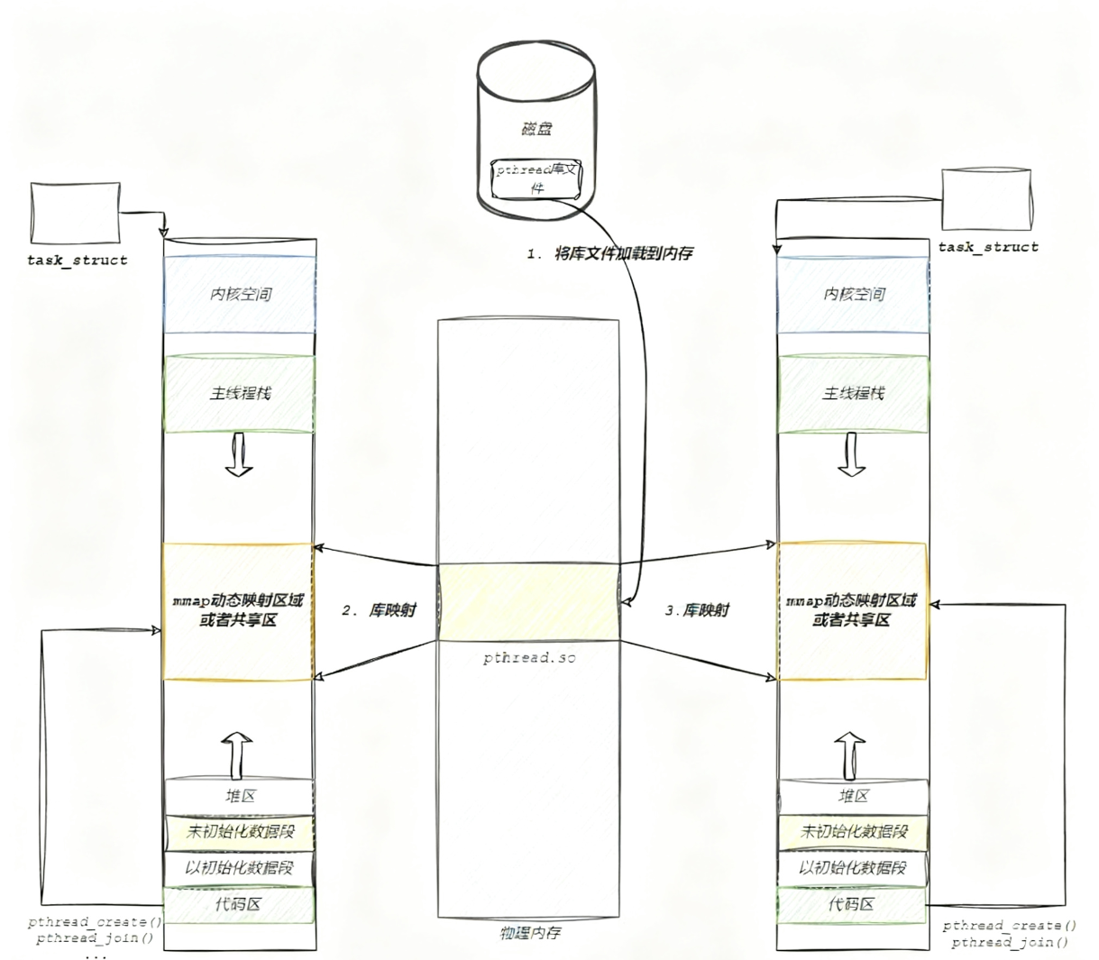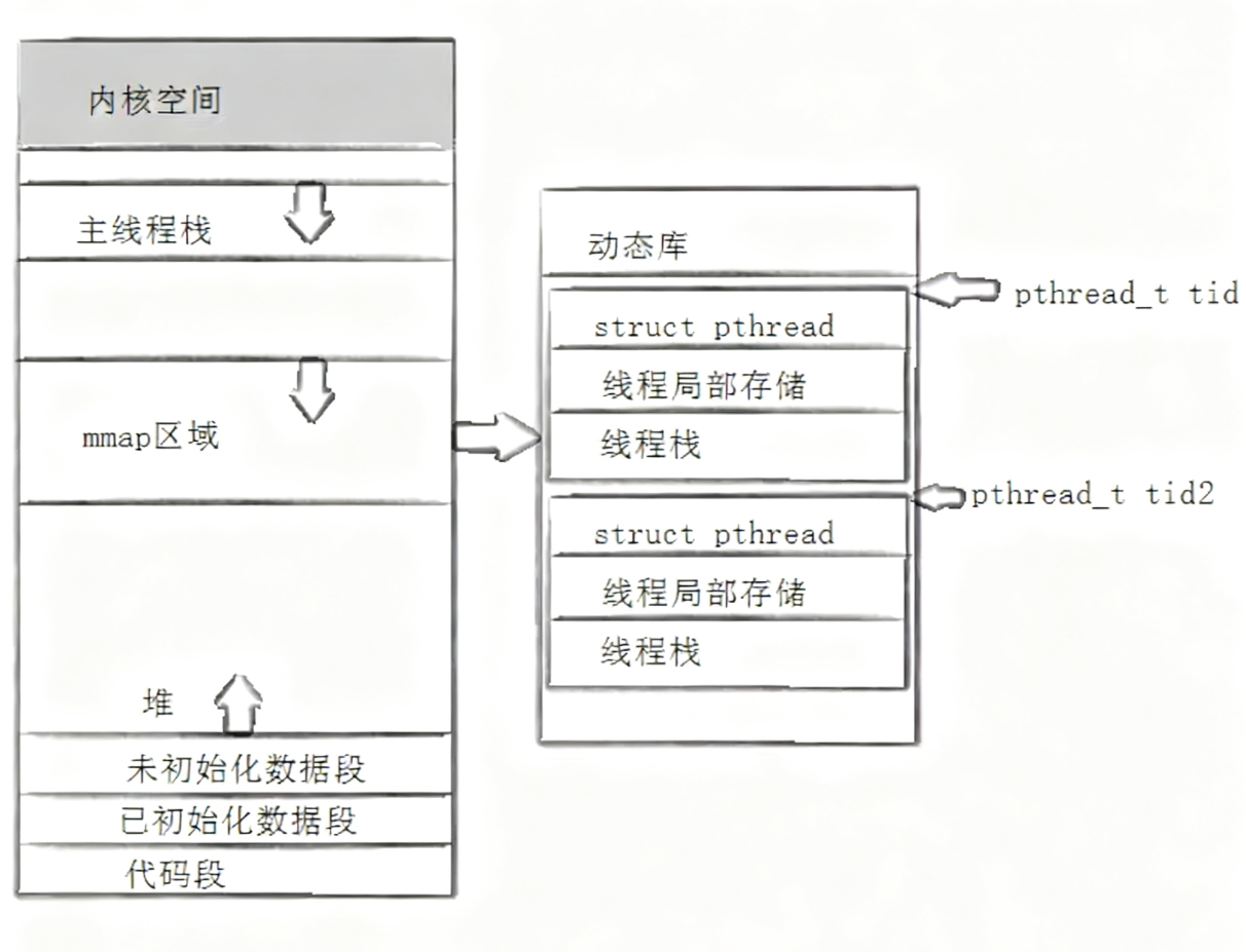 pthread_t 的具体类型取决于系统实现。在 Linux 的 NPTL(Native POSIX Thread Library)实现中,这个线程 ID 实际上对应着进程地址空间中的一个内存地址。