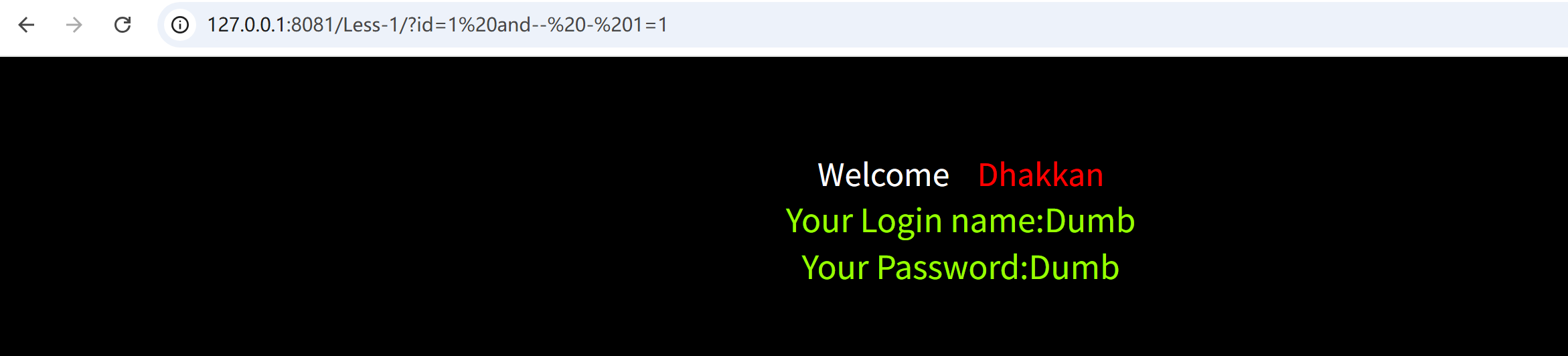 再次输入?id=1 and 1=1,此时的页面是: