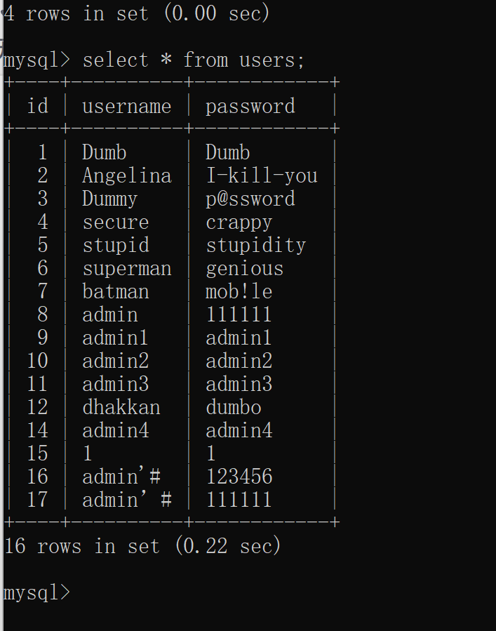 堆叠注入在用户表中插入数据,用户密码自定义可以无需解密实施登录