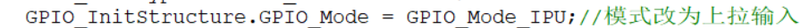 GPIO的模式,依旧是上拉模式,这里可以选择,上拉,下拉,浮空模式。我们可以看一下接在这个端口的外部模块的默认电平,如果外部模块默认输入高电平,我们就选择上拉输入,反之选择下拉输入。和外部设别默认电平保持一致,防止打架。