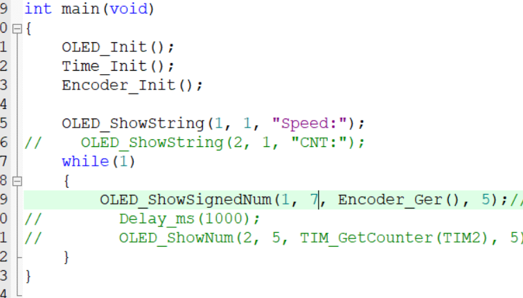 主函数中延迟。因为手转的慢,所以我们给长一点,要是电机闸门可以给短一点,防止技术溢出。