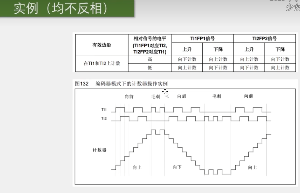 来到这里,这里的上升沿并不代表上升沿有效。因为编码器接口都是,上升沿,下降沿都有效的。