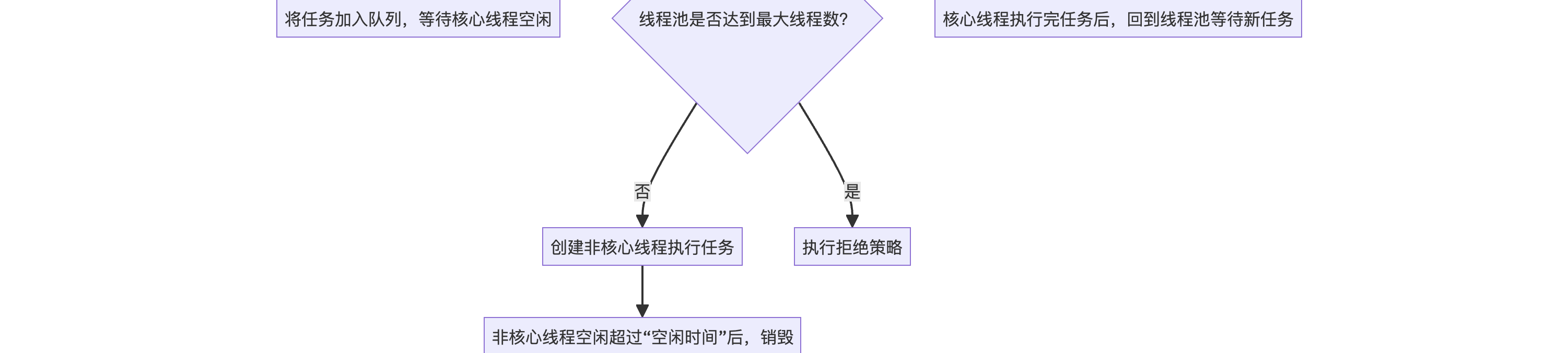 | keepAliveTime | long | 非核心线程空闲时间:超过此时间,非核心线程会被销毁 | 60L(单位:秒) |