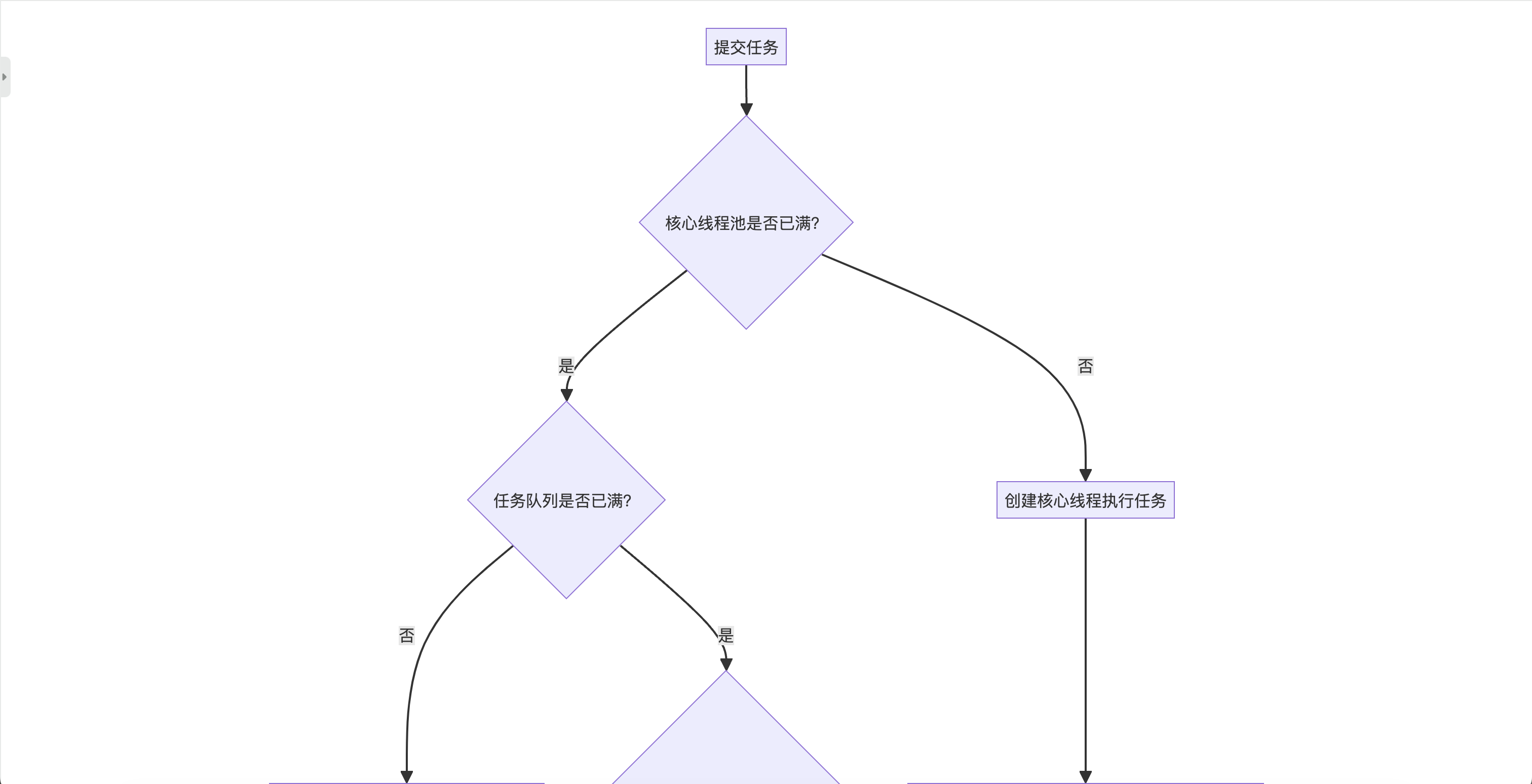 | handler | RejectedExecutionHandler | 拒绝策略:任务队列满且线程数达最大时的处理策略 | AbortPolicy(默认:抛出异常) |