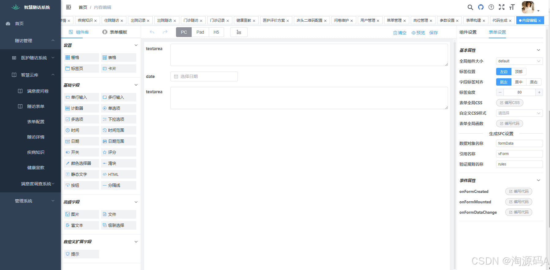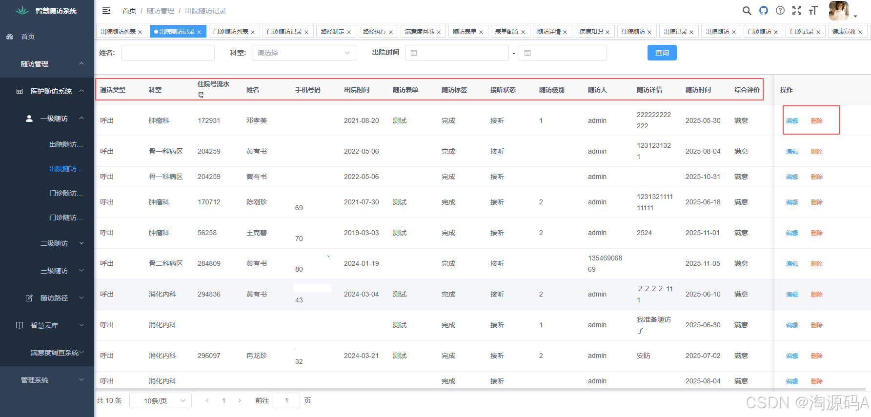 智慧随访管理系统源码,基于Java+Spring Boot+Vue的随访系统源码,支持二次开发,支持患者信息管理、多类型随访、三级回访机制、问卷模板