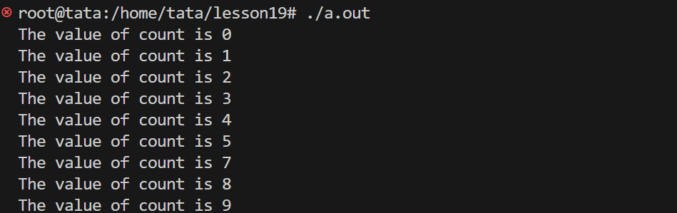 {pthread_t tid;pthread_create(&tid, nullptr, Routine, nullptr);while (true){cout << "The value of count is " << count << endl;sleep(1);}pthread_join(tid, nullptr);return 0;