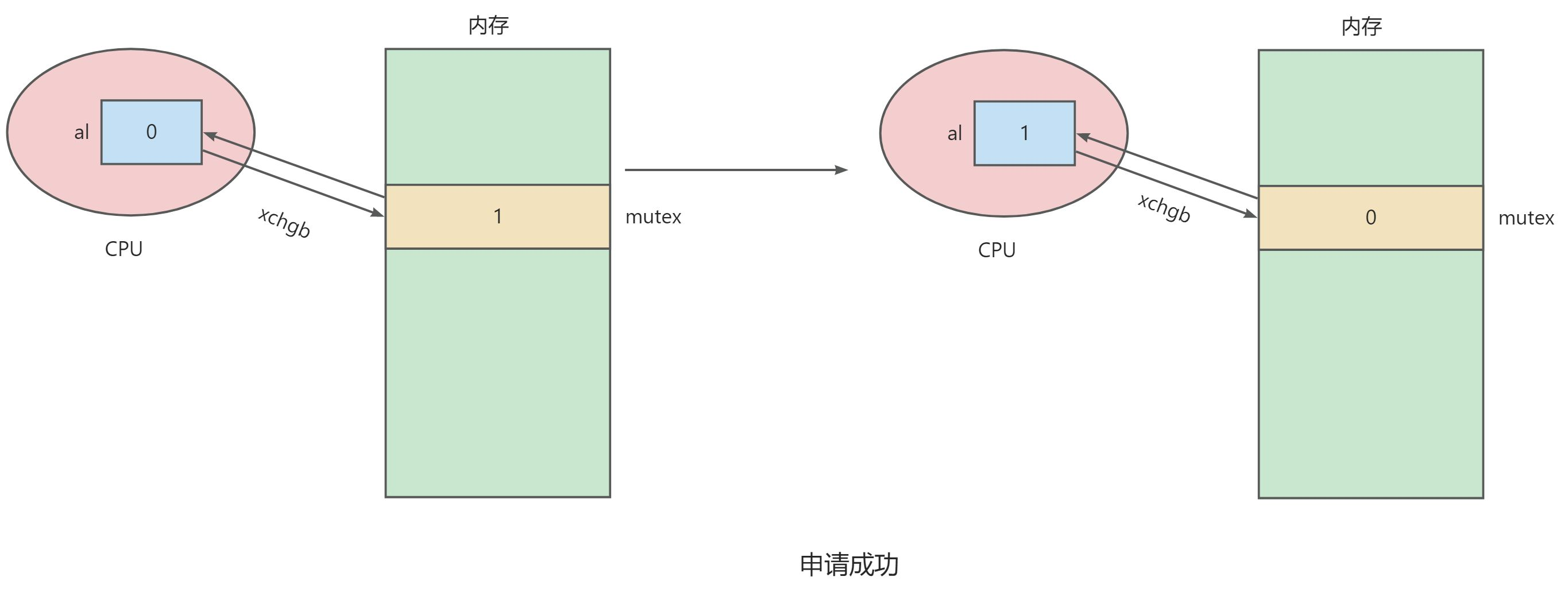 # 所以我们申请锁的本质就是执行 xchgb 这一条汇编指令,因为只有一条,所以只有已执行与未执行两种状态,具有原子性。