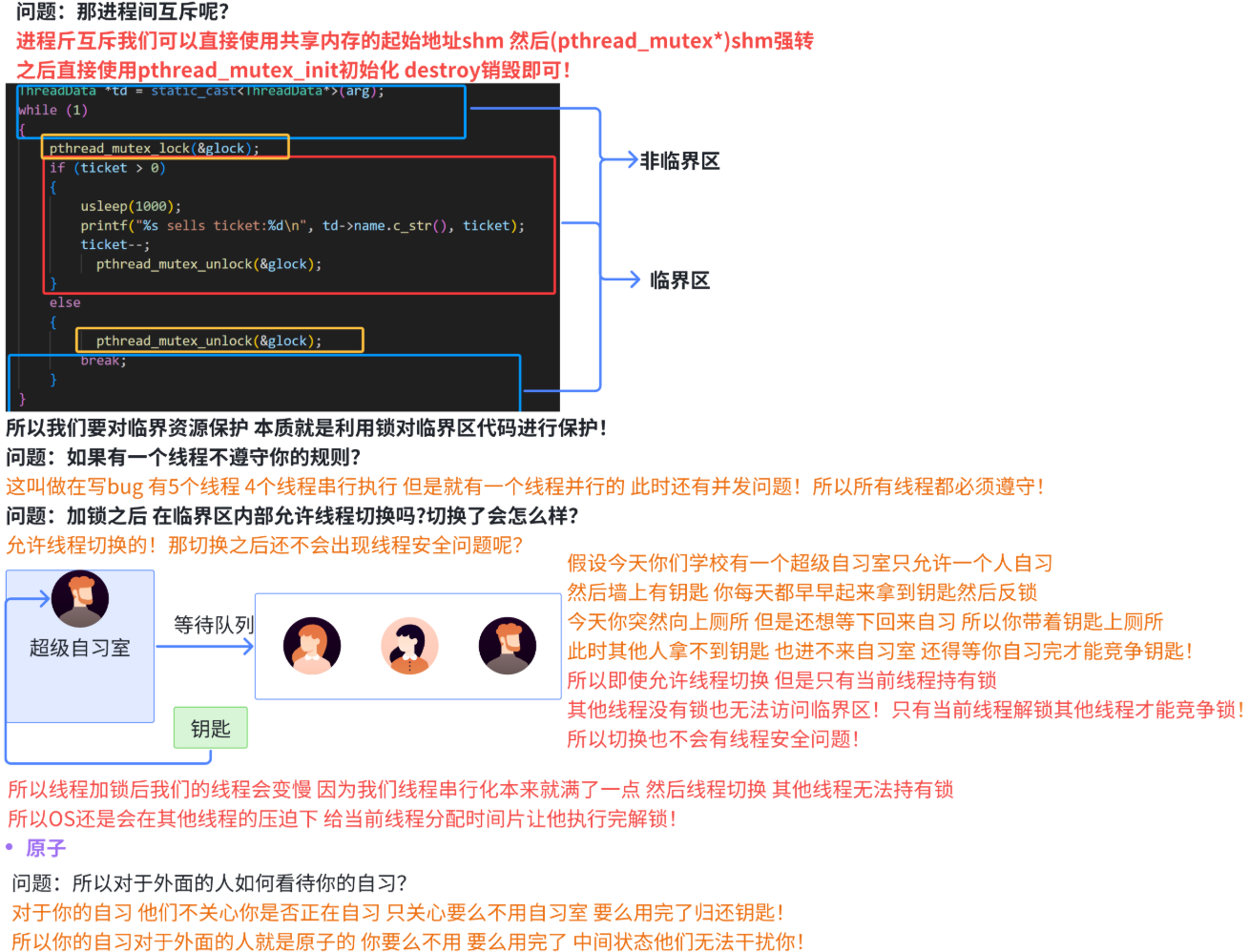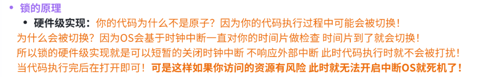 # 在加完锁之后,我们不可能让所有代码只被一个执行流访问,所以我们需要合适的地方解锁。