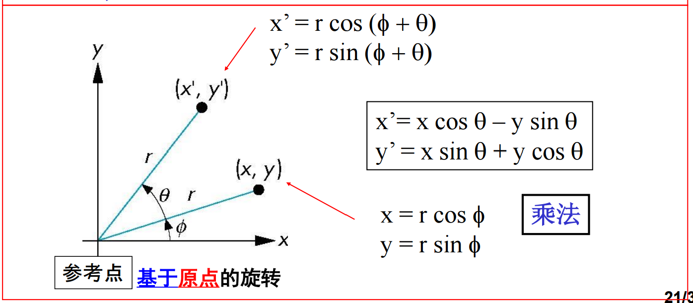 5、而对于旋转(Rotation),我们先考虑绕原点的二维旋转,比如说逆时针旋转即半径保持不变,角度增加了θ: